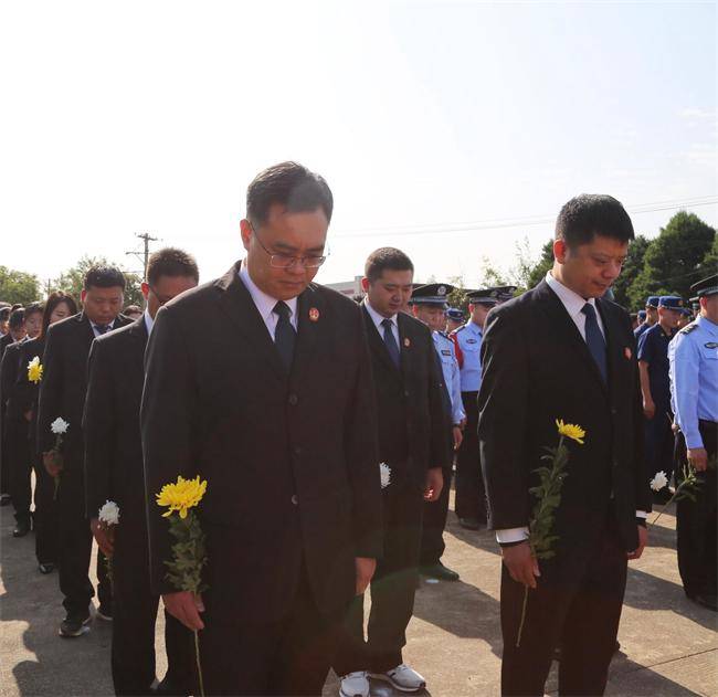 随后,干警们缓步绕行瞻仰烈士纪念碑、烈士英名录,有序敬献鲜花,寄托对人民英雄的深切缅怀和崇高敬意。