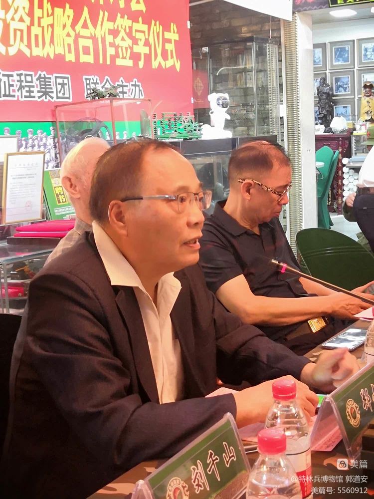 陈勇耀馆长介绍了在2023年八一建军节期间,特林兵博物馆专题片在央视和全国400多家电视台联播情况,并提出,抢救特林兵历史,传播特林兵精神,赓续红色血脉,传承民族文化,是特林兵博物馆的创馆宗旨。兵博团队在深圳坚持坚守20多年,终于获得了社会的认可。今天,我们与新征程集团深度战略合作,借助双方的资源,为退役军人就业创业提供更好帮扶服务。