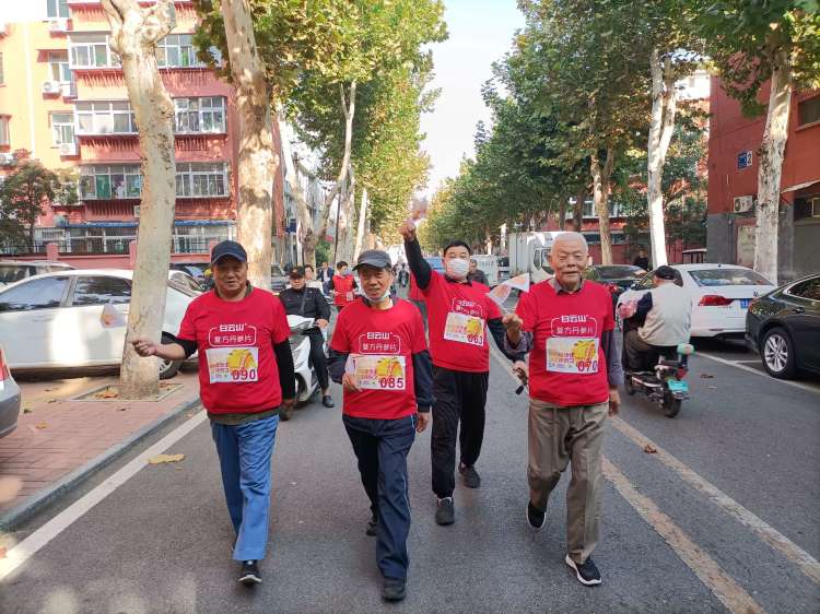 此次活动共有100名老人参与。不到8点半,参与活动的老年人已经占满了社区院内。这场健步走活动在三方主办单位负责人的热烈开场与老人们的激情欢呼中开始了。