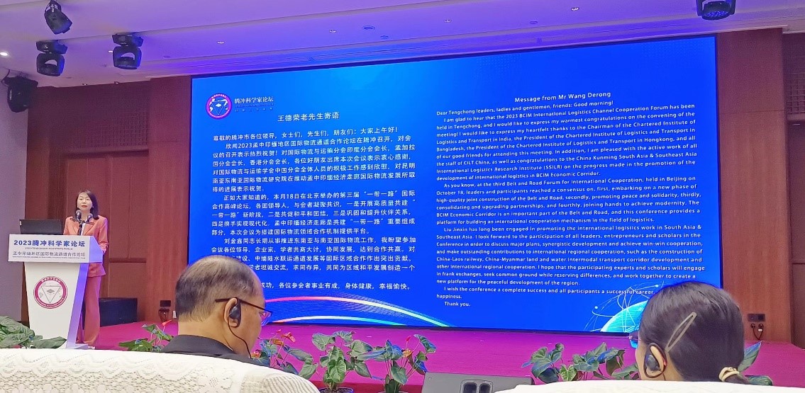 2023年10月22日,孟中印缅地区国际物流通道合作论坛在中国腾冲举办,中国国际物流发展开创者、国际物流与运输学会院士、原中国交通运输协会常务副会长、国际物流与运输学会中国分会创建者和首任会长、昆明南亚东南亚国际物流研究院首席顾问、国际物流界德高望重的王德荣先生发来贺信,对论坛的举办表示热烈的祝贺。