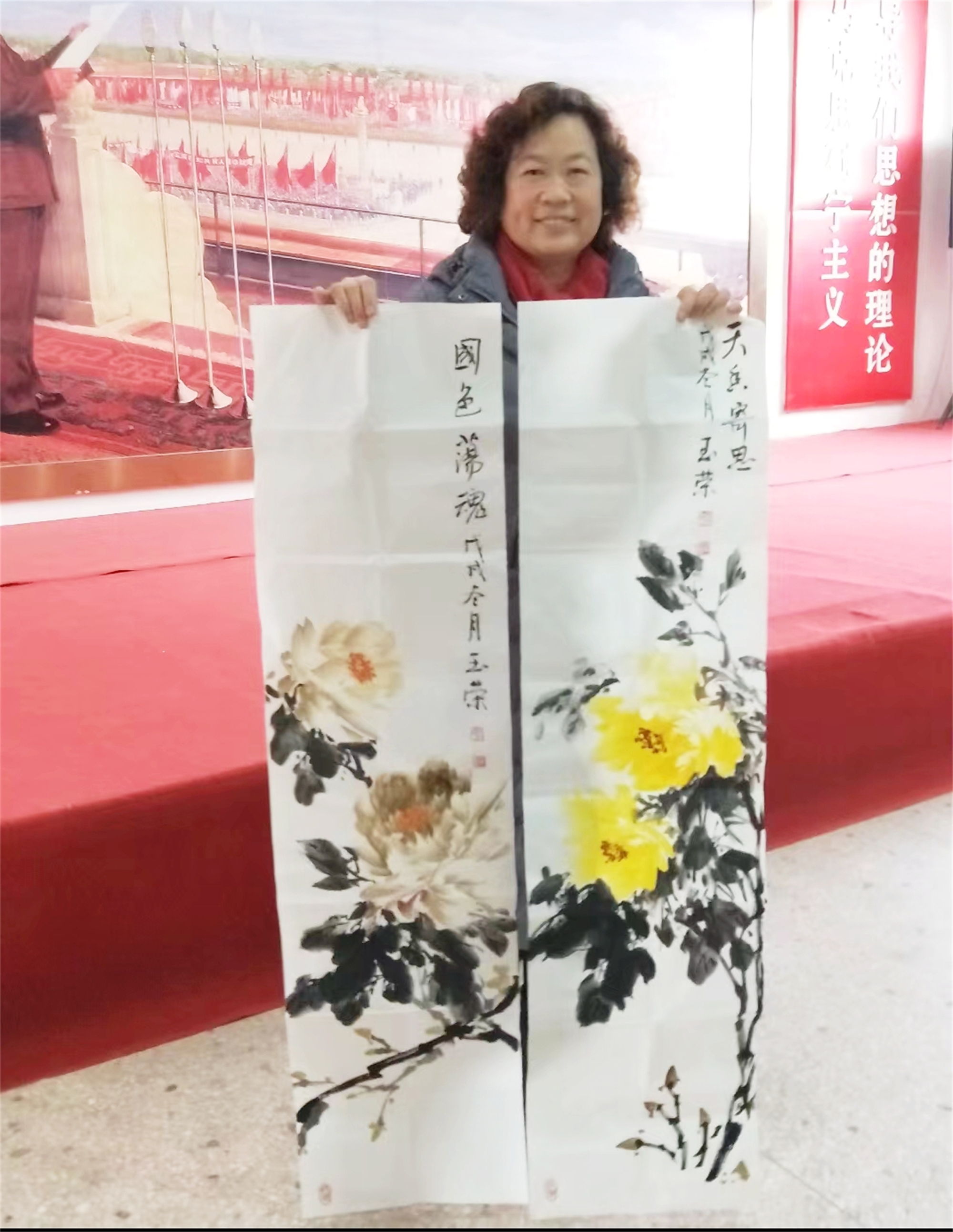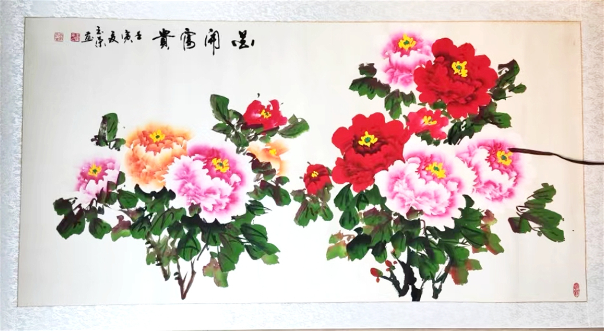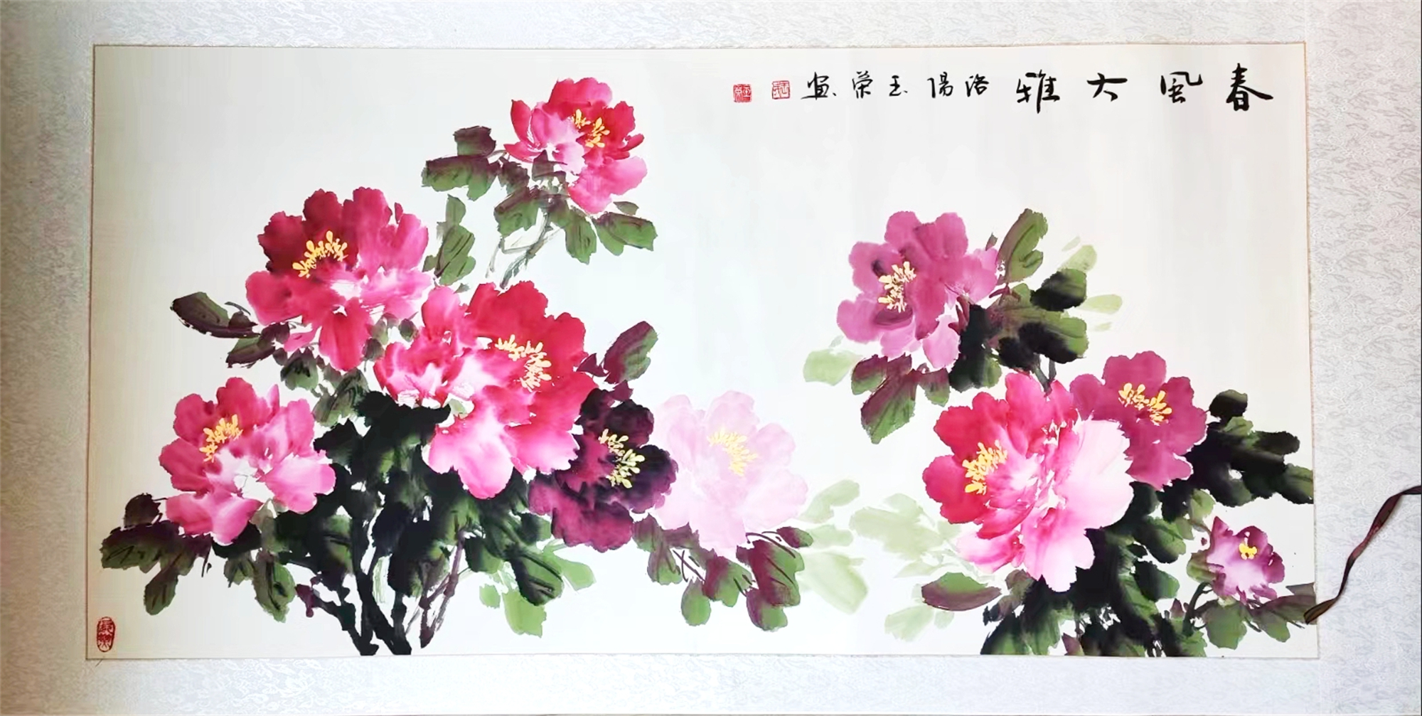 玉荣老师:画出的牡丹作品,统分表现出了牡丹的富贵和倔强的个性特色,使得花艳丽灵动,神采奕奕, 给人以丰满雍容,富贵高雅之感,也是她牡丹画作品呈现给中外朋友最大亮点。
