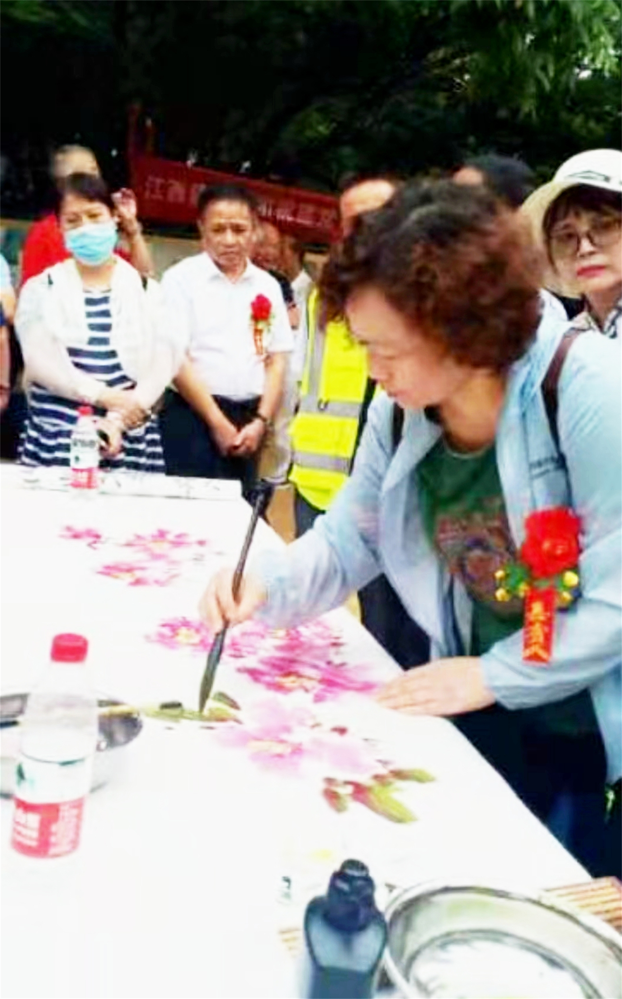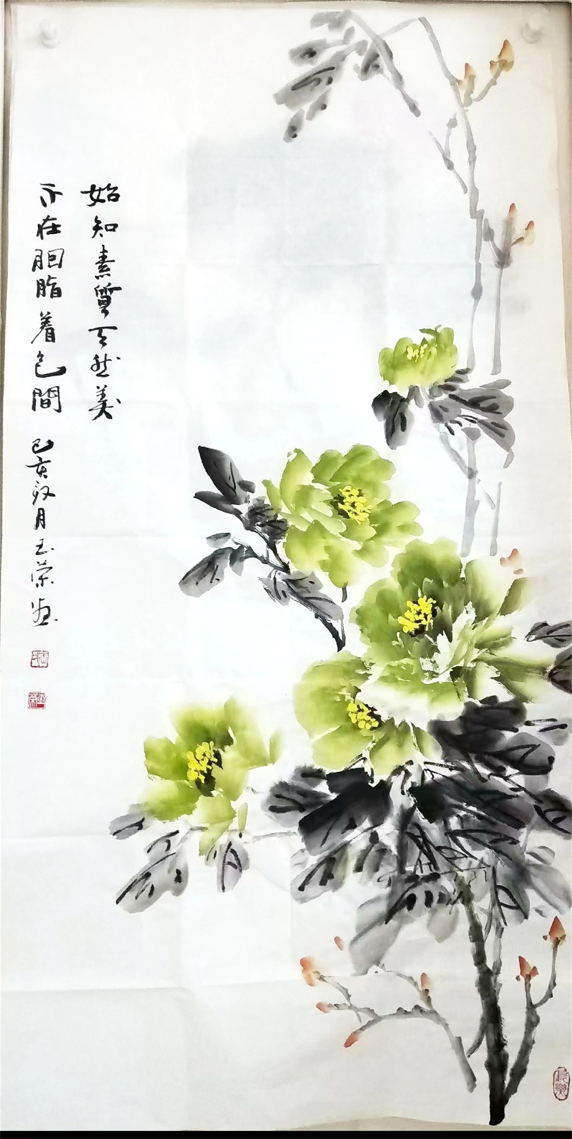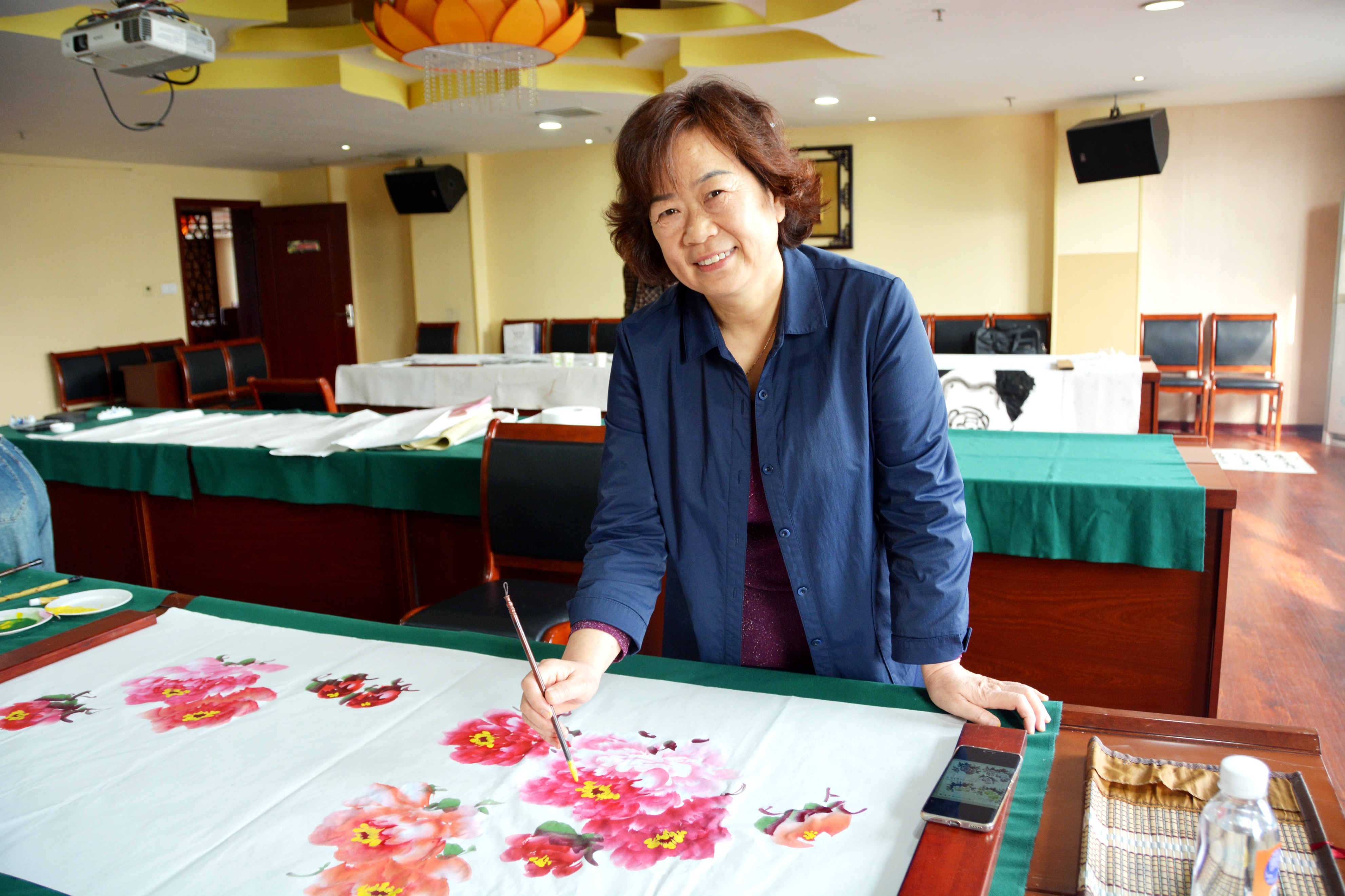 玉荣老师:画出的牡丹作品,统分表现出了牡丹的富贵和倔强的个性特色,使得花艳丽灵动,神采奕奕, 给人以丰满雍容,富贵高雅之感,也是她牡丹画作品呈现给中外朋友最大亮点。