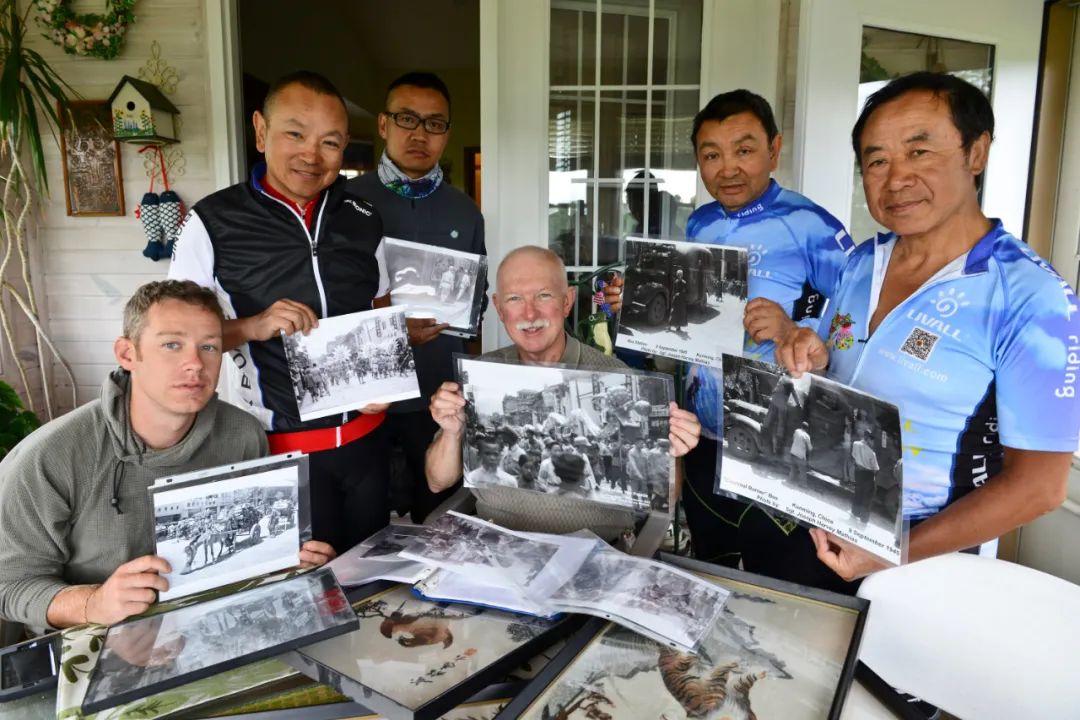 (图片说明:金飞豹带领信使队员访问飞虎队老兵约瑟夫·哈维·麦瑟亚斯的后裔詹姆士,并在他家看到了其父亲在二战期间拍摄的昆明黑白老照片。)