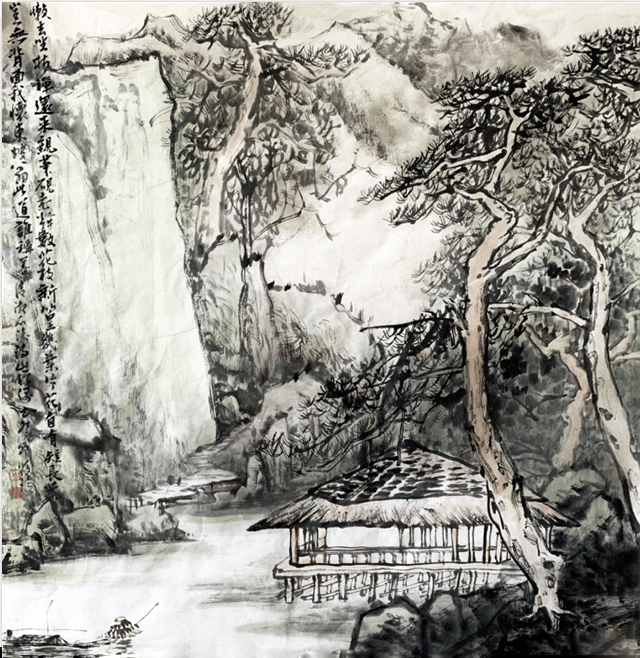 中国传统山水画注重将人文情感和哲思融入作品中。画家通过细腻的笔触和抒情的手法,以及山、水、人物等元素的巧妙结合,使作品表达深沉的人文情感和哲学思考,体现中国文化的智慧和精神。