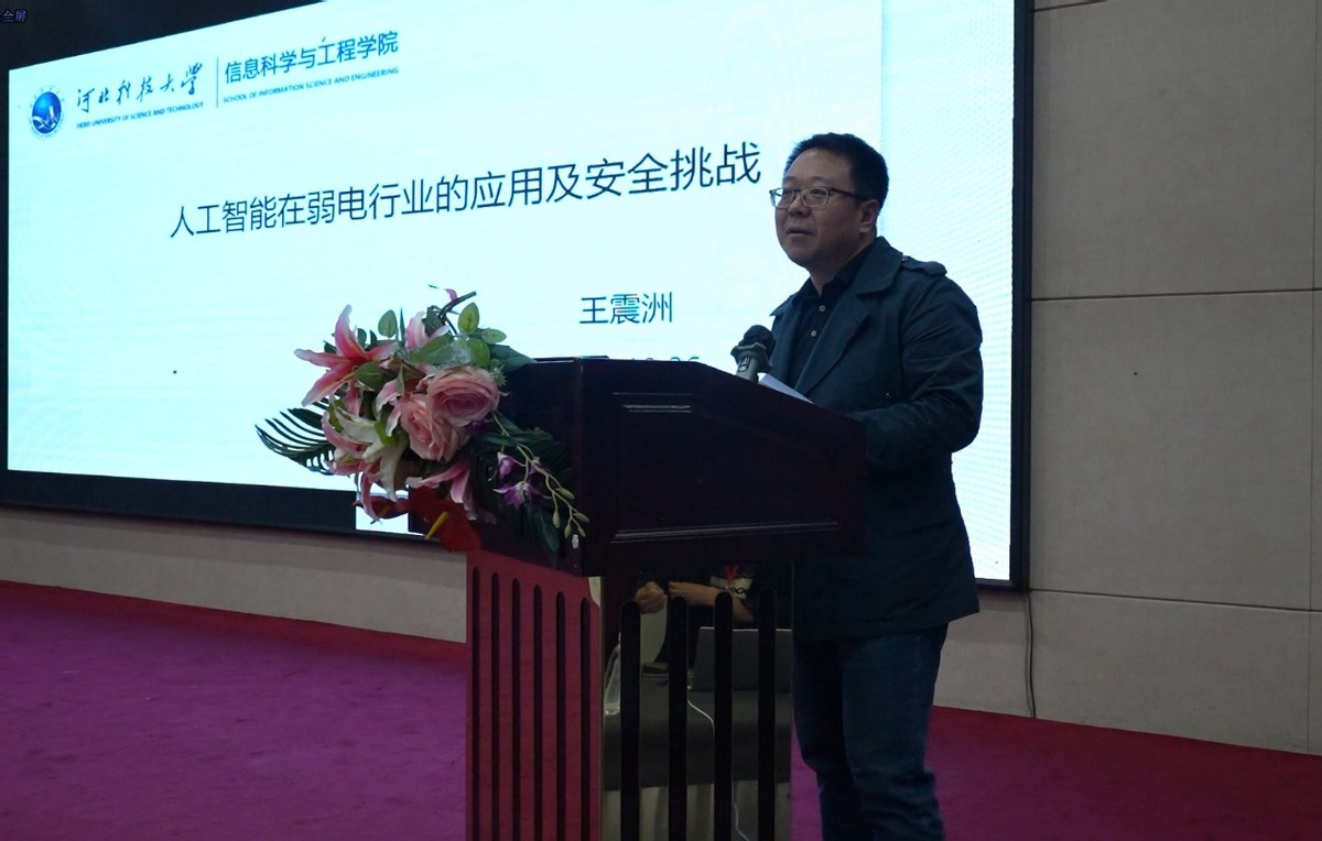 河北科技大学信息科学与工程学院王震洲副院长做《人工智能在弱电行业的应用与安全》的报告