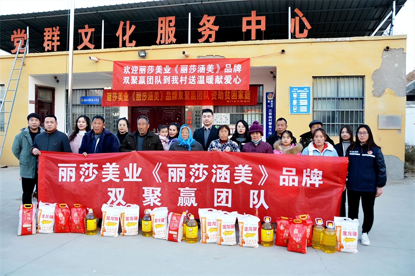 丽莎美业 《丽莎涵美》品牌双聚赢团队长陈双双一行在三官庙村主任江小记,党支部委员崔福文、崔坤峰、村支部娄川川、网格警务助理朱新换带领下首先到五保户崔参富家看望慰问,随后到崔文正一家看望慰问,然后又到三官庙村党群文化服务中心看望慰问其他困难家庭,询问他们的身体情况和家庭状况,倾听他们的心声,鼓励老人树立信心,克服困难,保持乐观的心态积极面对生活,并为他们送上祝福和关心的同时,也送上了大米、油和面粉慰问品,并叮嘱老人们保重身体、注意添衣保暖,老人们脸上洋溢着幸福灿烂的笑容,心坎里涌动着无限的股股暖意,他们从心里真切感受到了丽莎美业 《丽莎涵美》品牌双聚赢团队长陈双双、丽莎美业《丽莎涵美》品牌总裁李聪聪:一行爱心企业的深深对他们的关爱。