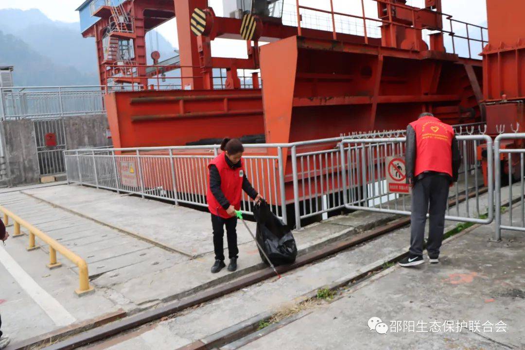 志愿者们和惠杰公司员工一起,开始在坝前、坝下净滩,捡拾矿泉水瓶、塑料袋等白色垃圾。