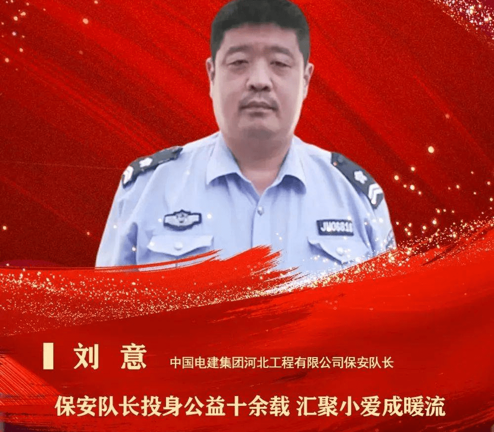 今天,我们要向刘意这位好人致敬。刘意是中国电建集团河北工程有限公司的保安队长,他用自己的行动诠释了什么是真正的奉献和爱心。他不仅在公司尽职尽责,更在业余时间加入了石家庄市“一家人志愿团队”,跟随团队多次到石家庄市以及周边地区进行帮扶,所捐款项达8万元。他的善举不仅得到了社会的认可,更让他荣获了“石家庄市文明标兵”“石家庄市优秀志愿者”“河北省优秀志愿者”“全国最美志愿者”等荣誉称号。