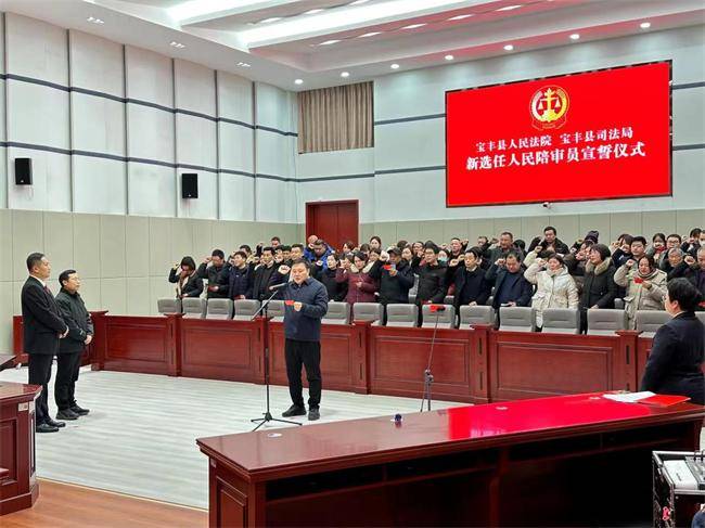 为增强人民陪审员的使命感、责任感,切实发挥人民陪审员制度在弘扬司法民主、促进司法公正、保证司法廉洁、增强司法权威等方面的作用,12月18日下午,宝丰县人民法院举行新任人民陪审员宣誓仪式。院党组副书记、副院长高果果主持仪式,院党组书记、院长李明,院党组成员、政治部主任李亚鹏,县司法局党组成员冯旭辉参加仪式。