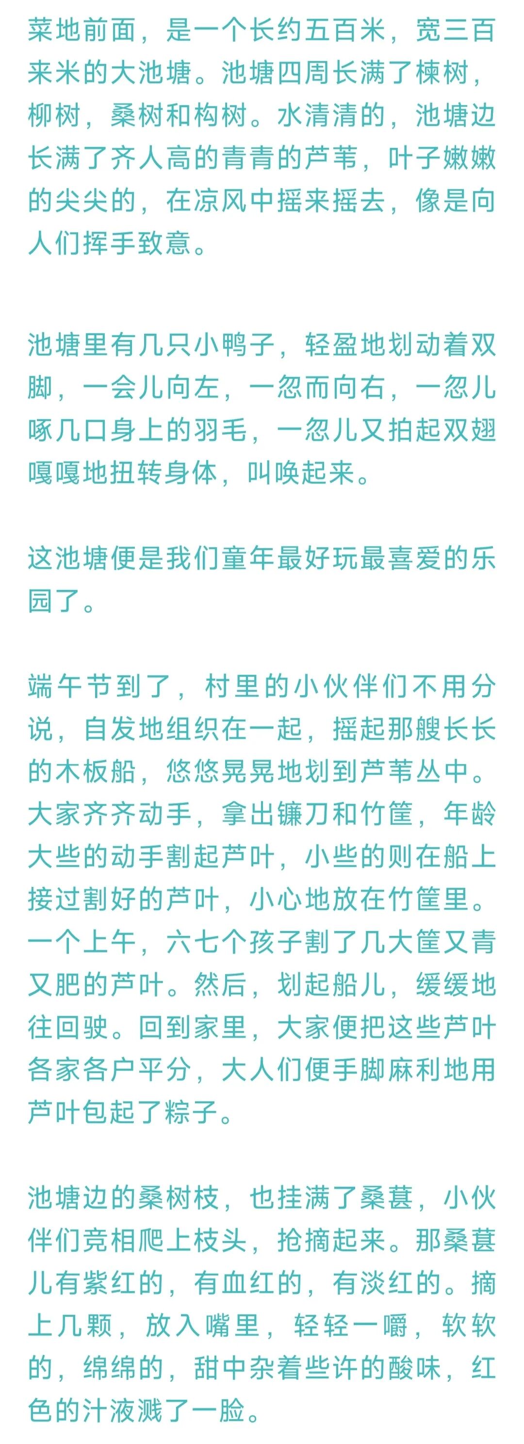 仲夏时节,池塘里长满了郁郁翁翁的荷叶和菱角。太阳出来,宽大的荷叶上,那晶莹剔透的点点水珠,在阳光的照射下,闪着五彩缤纷的光,好看极了。几场雨后,荷杆上的莲花开得格外好看,那香气,简直可以让人晕眩。我们几个小伙伴,一边划着小船,一边在左顾右盼地采摘莲蓬,然后,大家分享食用。