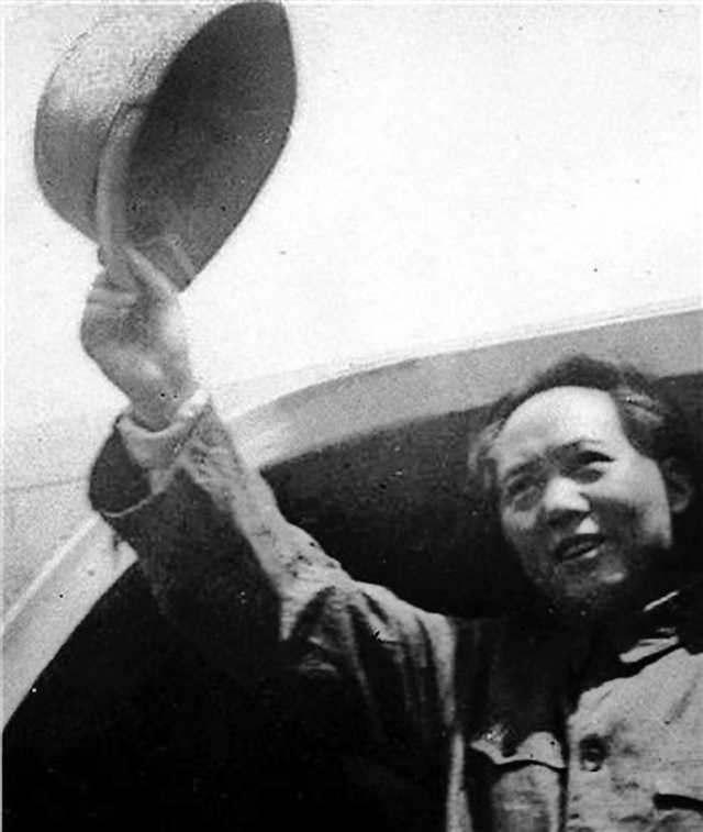毛主席摘下礼帽,向欢迎的人群频频地挥动着,昂然挺立在舷梯上。所有镜头都对准了他,“毛,简直是好莱坞!”赫尔利大使,翘起大拇指不断夸奖。记者们把毛主席团团围住了,这个提问,那个递名片,有个记者抓住毛主席的手,激动地,紧紧拉住久久不愿把手放。沈钧儒,个子矮,急得直跺脚,一边挤一边大声讲:“我是沈钧儒,我是沈钧儒!”试图冲进层层人墙。