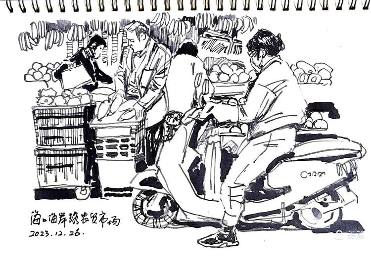 今日到海南省图书馆拜访当地的画家柯兴发先生,他是画速写的大家,给我们三个人各画了一张人像速写。并且赠送我一本他本人的水墨人物画集。