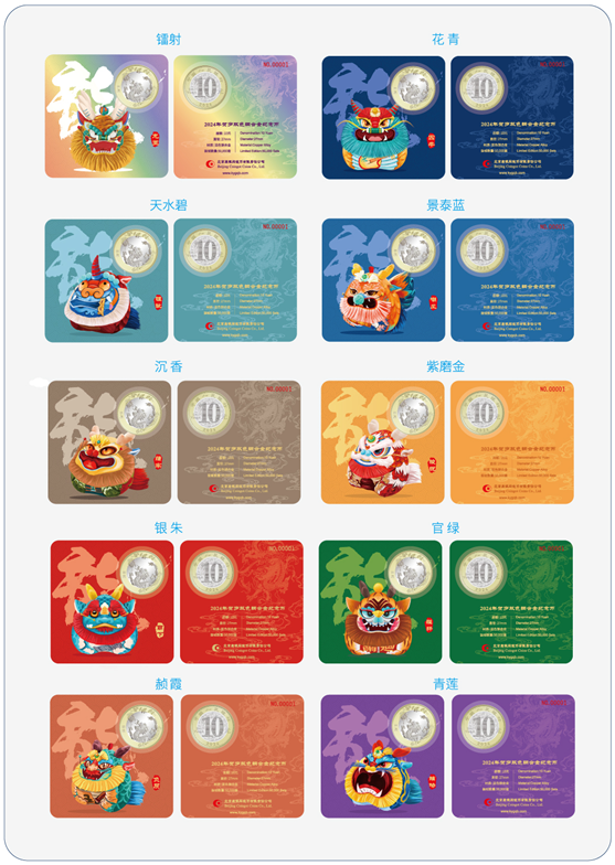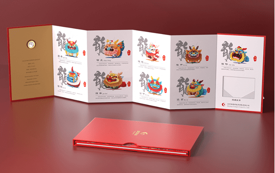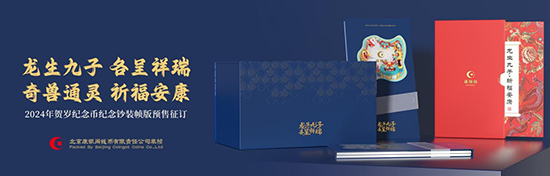2024甲辰龙年来临之际,北京康银阁钱币有限责任公司以《龙生九子 各呈祥瑞,奇兽通灵 祈福安康》为主题开发2024年贺岁纪念币和纪念钞装帧系列产品,该系列产品共分三版,第一版为折页式红包,第二版为龙生九子(一套九枚)卡币,第三版为一钞一卡币专属礼盒(一盒一册,隐藏盲盒),亦礼亦藏亦祈福,是中国古老的龙文化在现代钱币中的传承。
