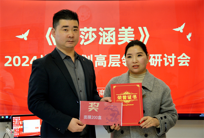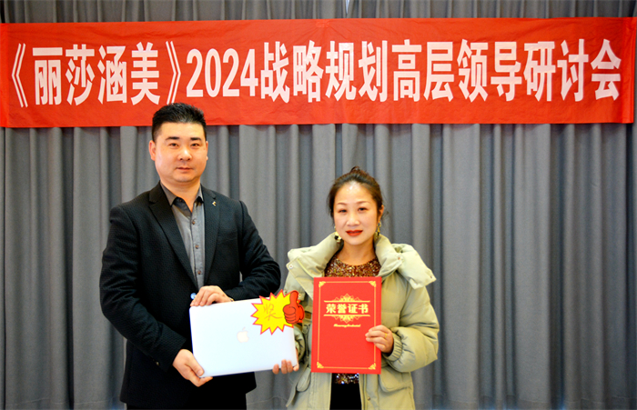 《丽莎涵美》品牌创始人洛阳丽莎美业商贸有限公司总裁,香港维亚丽莎生物科技有限公司大陆运营部执行总裁,洛阳雅俗共赏文化艺术研究院常务副院长,洛阳中小企业协会副会长李聪聪讲话:《丽莎涵美》高层管理家人们辛苦啦,2023已经完美落幕,我们迎来了2024新的一年。回想过去的一年,称得上是慷慨激昂,奋力推进的一年。