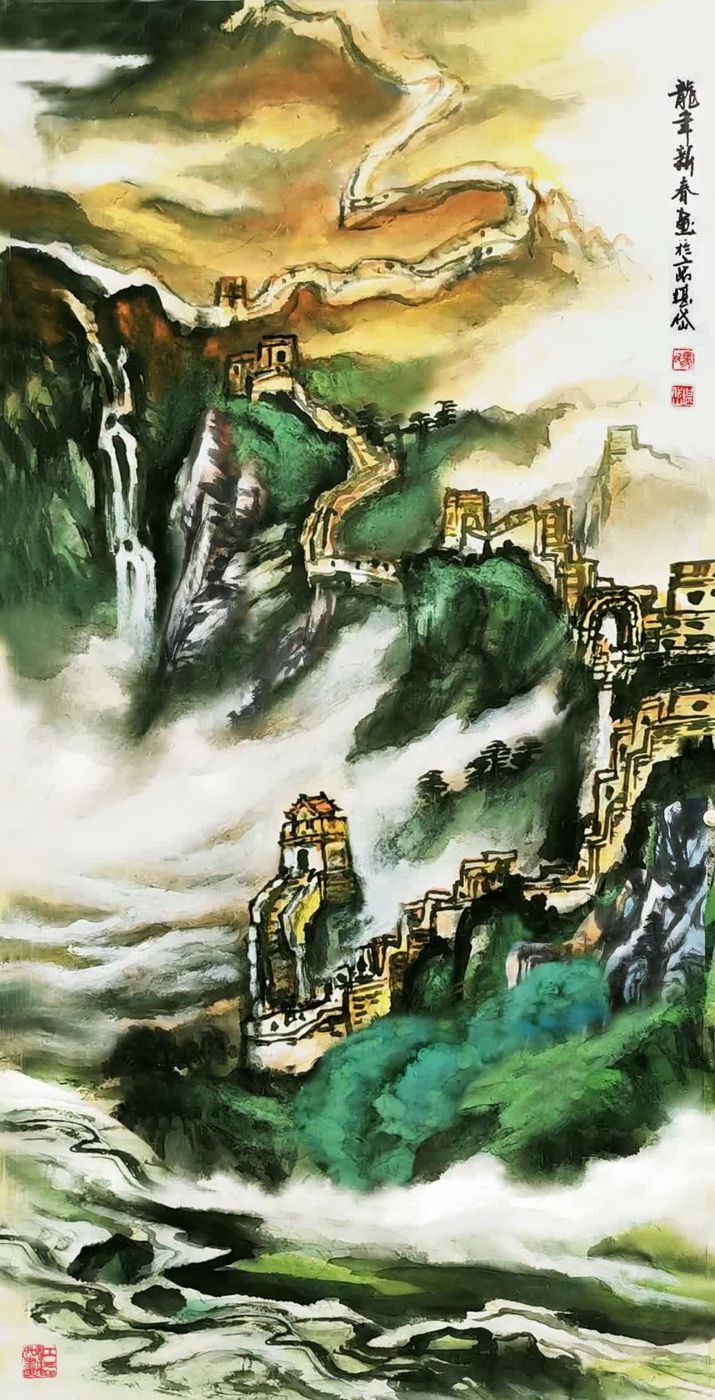 今年是龙年,我参照北京九龙壁龙的不同形态动势,并结合万里长城实景绘制了《龙腾盛世》组画九幅,敬请大家指正。