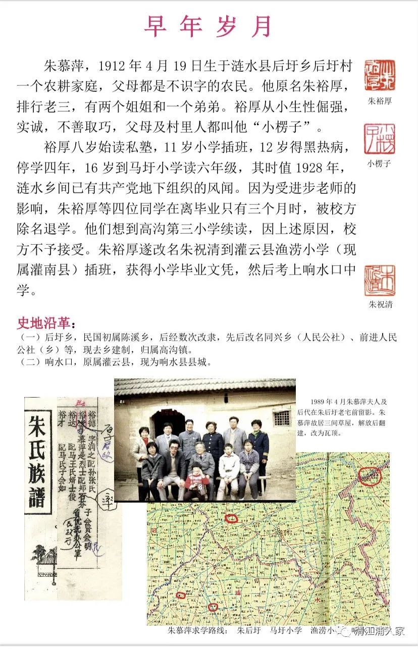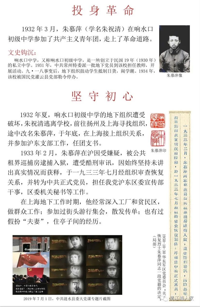 以下关于烈士生平的文字与图片乃朱会民先生搜集整理,烈士长子朱会贤先生平面设计,花费四个月时间制作完成。目前于清宴园“朱苑”橱窗展出,欢迎大家前往实地参观。