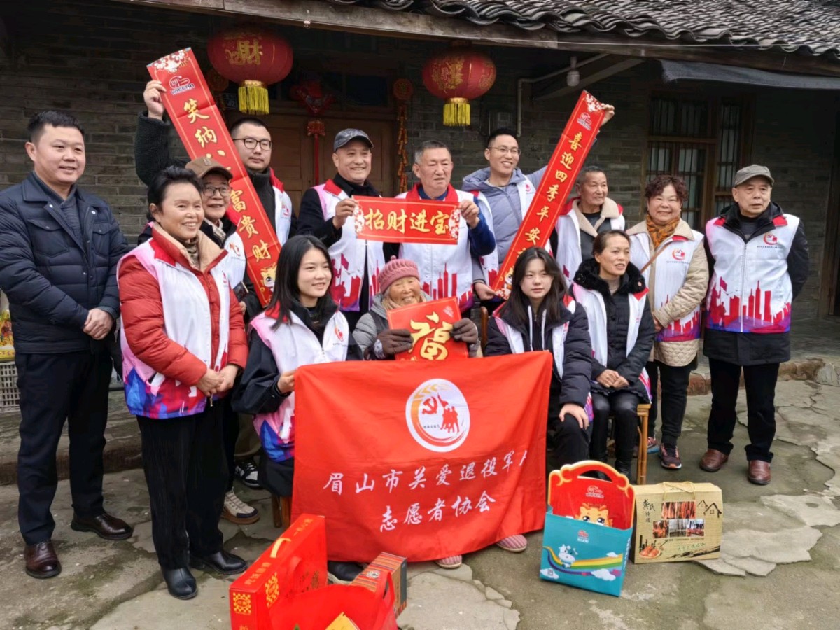 据悉,从1月 6日开始,眉山市关爱退役军人志愿者协会组织有关单位和企业,先后对全市各区县21位抗战老兵,13位抗美援朝老兵代表,两位十八军进蔵女英雄送上慰问品和慰问金。凡是老兵做寿协会按惯例参加主持寿典送上贺礼 和寿金。据统计,这次春节慰问共发出现金 2. 8万元。协会还争取到四川普善公益慈善总会、深圳龙越慈善促进会、农工党眉山支部、云南白药公司和济川大药房、