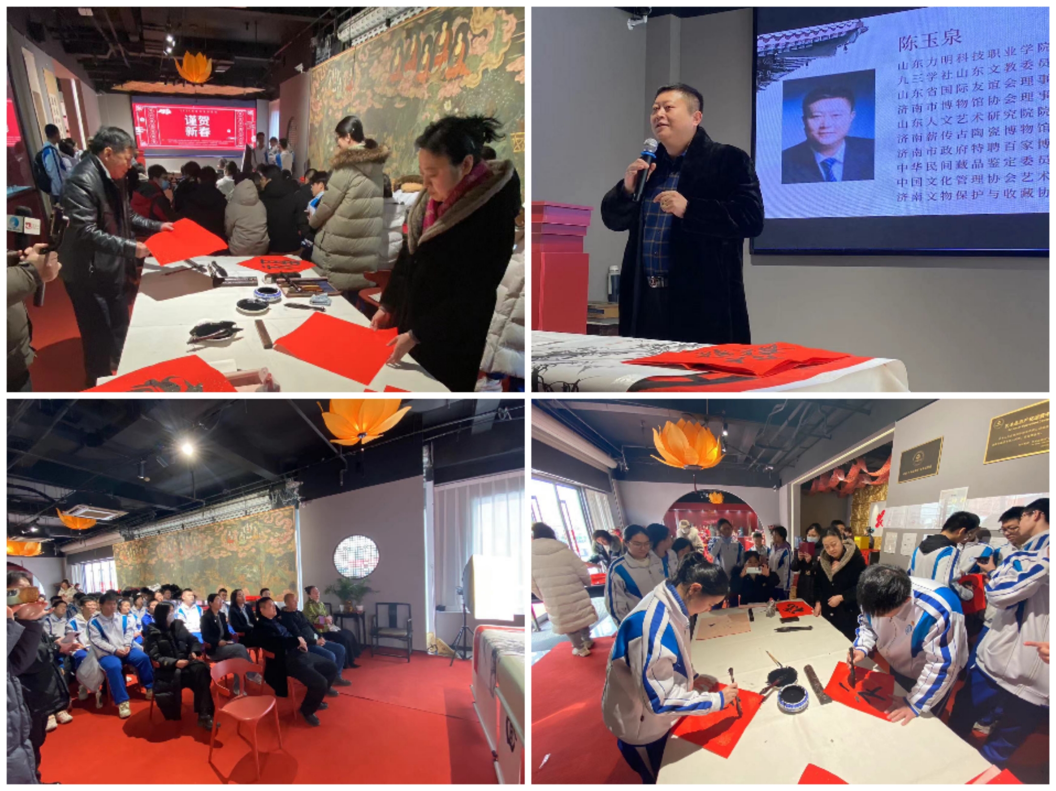 山东省人文艺术研究院常务副院长陈玉泉先生发表重要讲话,对青少年一代传播中华优秀传统文化给予肯定和赞许,为传统文化后继有人而欣慰并进一步对年轻一代传承弘扬优秀传统文化寄予厚望。本次活动丰富青少年群体的精神文化生活,现场让人们近距离感受到了浓浓的传统年味。