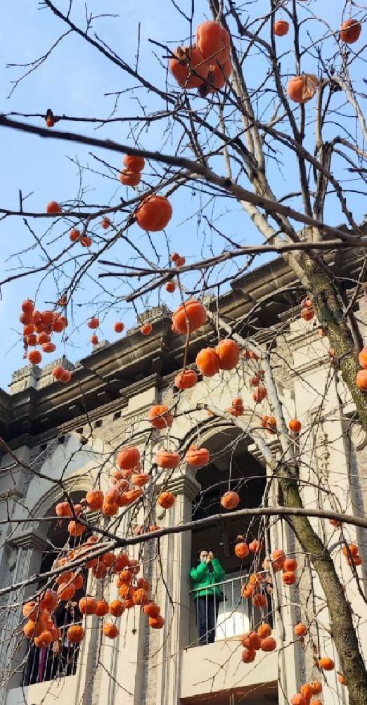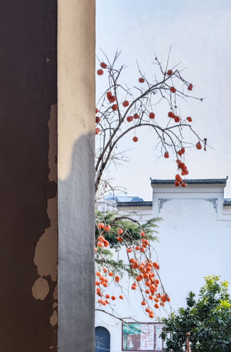 寺院里草木繁盛,四季欣荣。冬日里的柿子树金果滿枝,摇曳在金碧辉煌的大殿前,交相辉映,昭示着新的一年,人和景盛,柿柿如意!