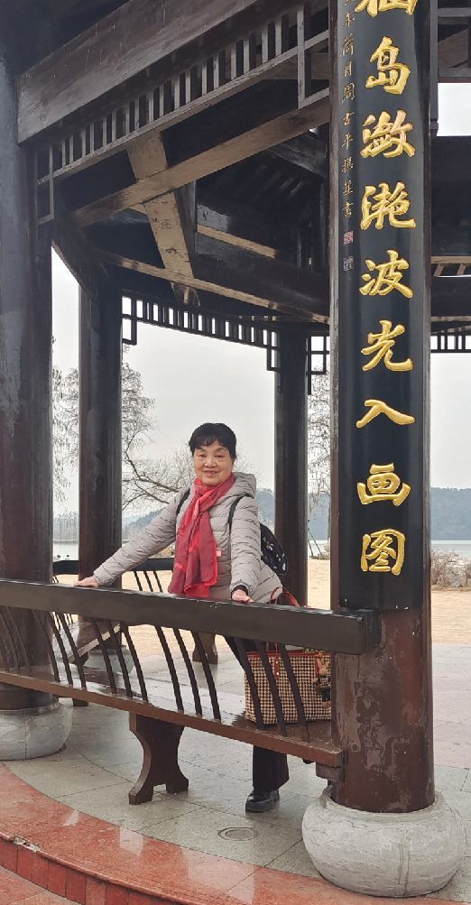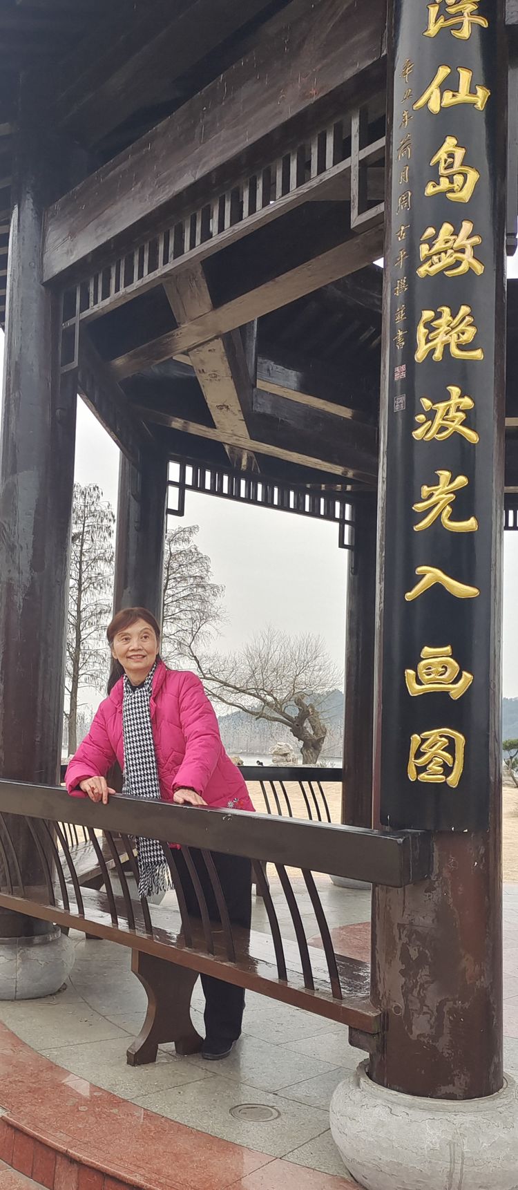 冬阳暖照碧湖清,雁岛玉烟萦。金杉秀挺,曲桥悠荡,云缈绕幽亭。