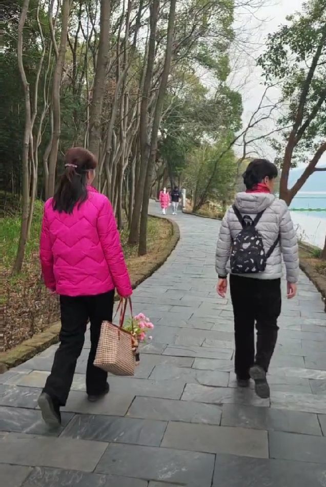 我们沿着湖边的小道闲步悠行,看湖水微澜,碧波如镜。