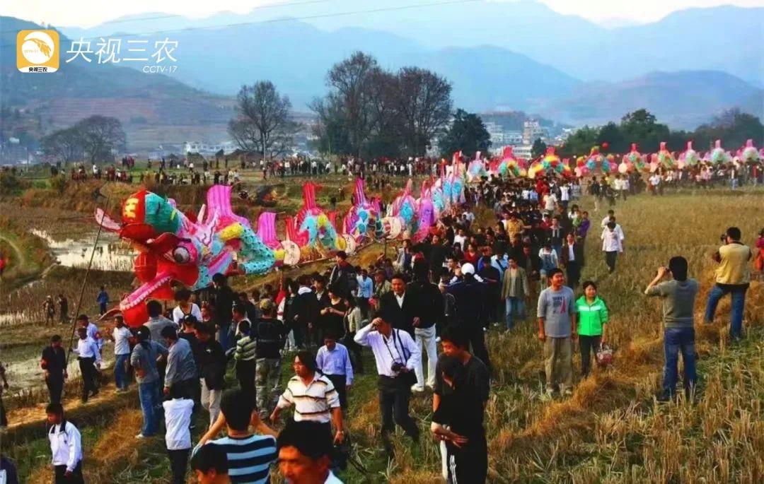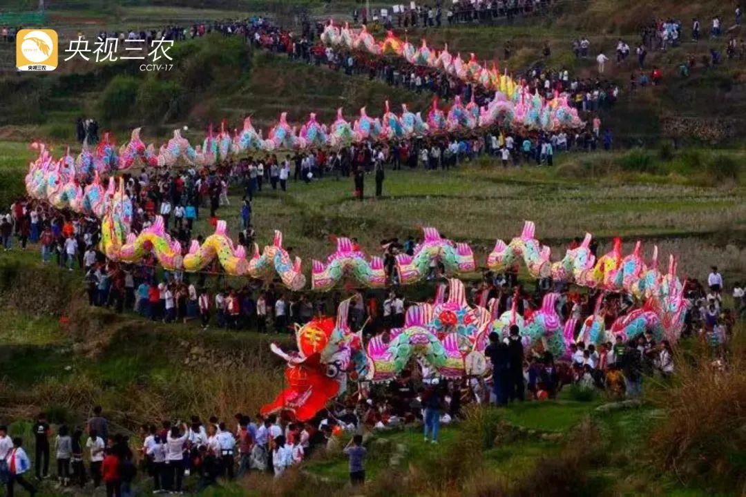 今年的姑田大龙100多节,长达750米。正月十五傍晚,“天下第一龙”热闹出游。大龙每节至少由五个青壮年轮流抬举,而硕大龙头则需20多人轮番上阵,由三个人擎着,一个人前面看路,四个人用绳子从四方拉住,才可平稳前行。沿途数万游客或站在田埂,或立于山丘,簇拥相随,争相拍照。
