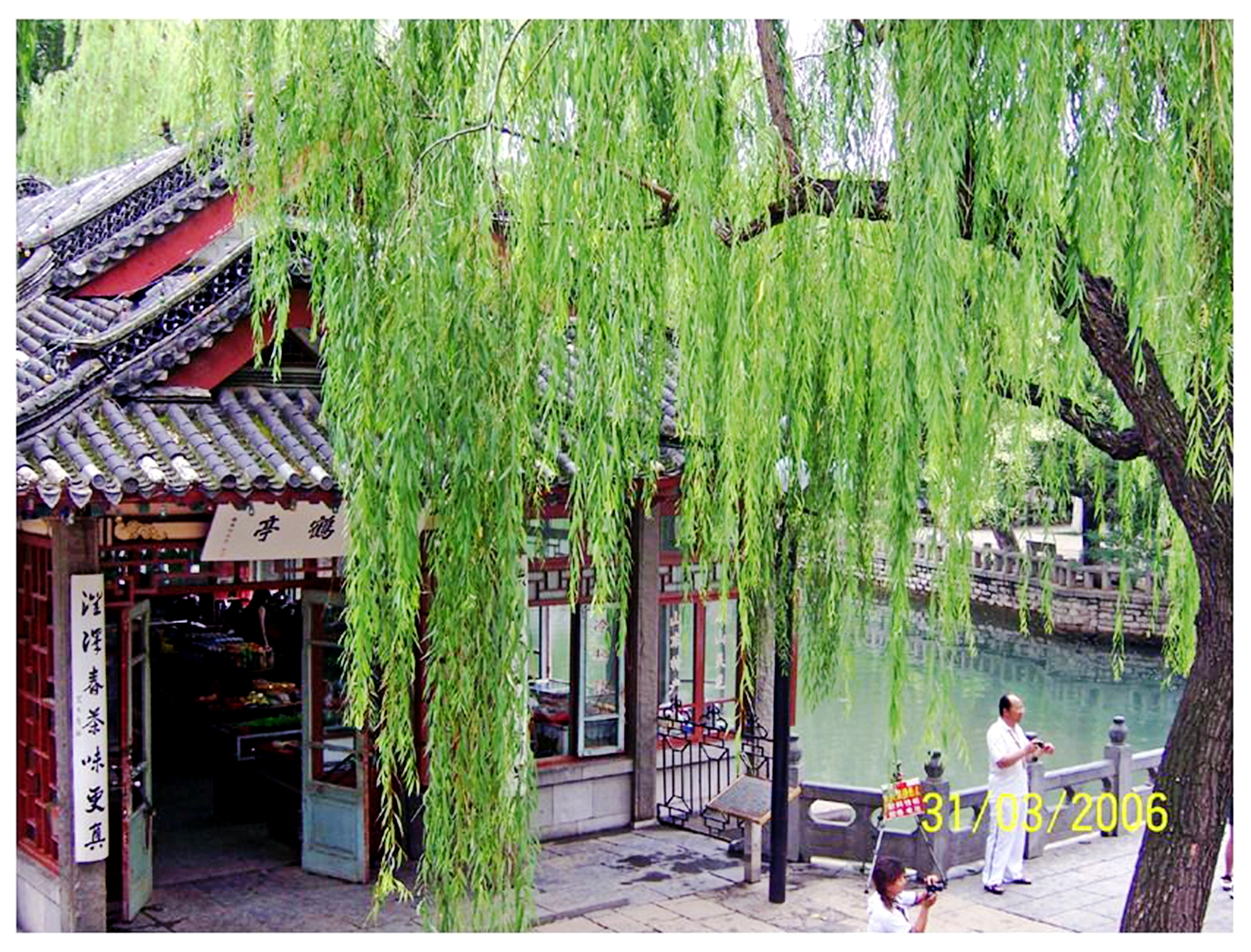 当时趵突泉在来鹤桥头东侧望鹤亭茶社南面泉池岸边立了一块铜牌,将老舍散文名篇《趵突泉的欣赏》一文镌刻在上面。舒济舒乙先生曾并排站立在这块铜牌下合影留念。那天正好是老舍长女舒济女士65岁的生日。