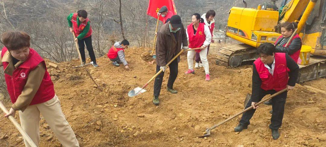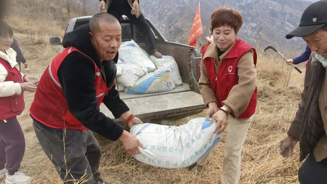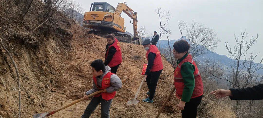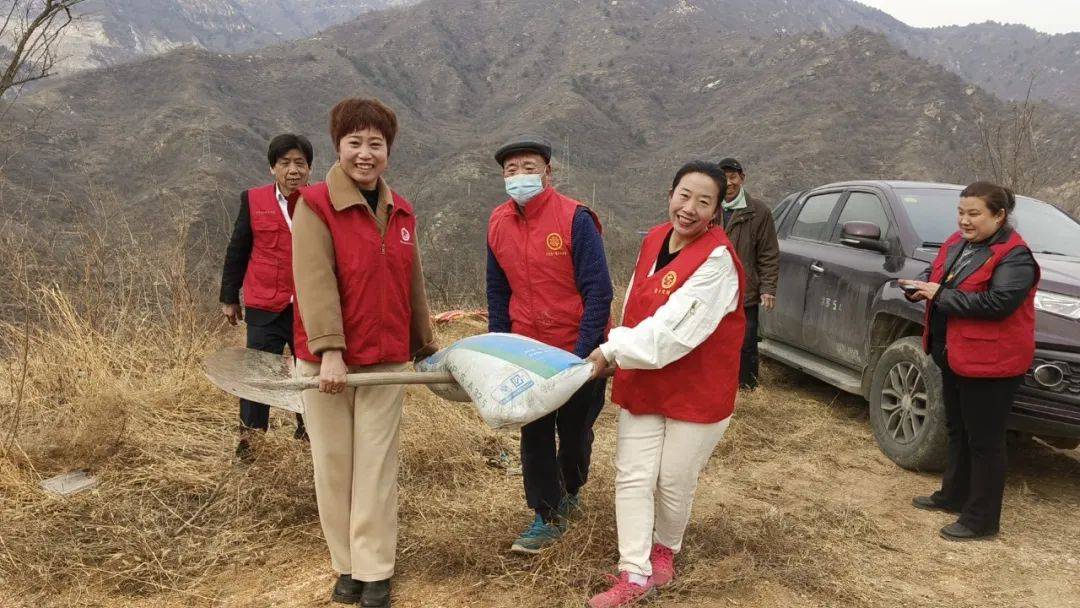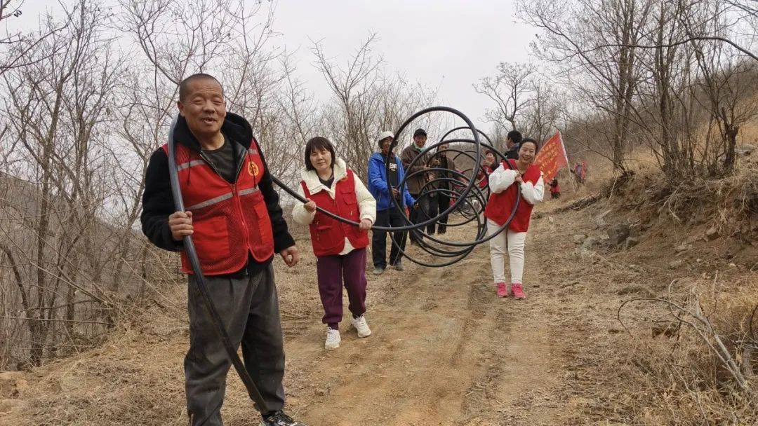 志愿志们开始往山上搬水泥、抬水管、挖坑……大家干得非常卖力,尤其是小志愿者赵梓盛和鹿泉区妇联主席赵向莉一刻都没有停歇。在志愿者们的共同努力下,前期准备工作顺利完成。