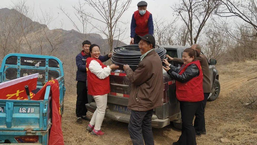 今天早7点半,志愿者们在桥西区大经街集合,9点50分到达占路崖村“一家人”桃园基地,大家顾不上休息,先给建档立卡脱贫户发放了爱心物资,之后大家开始修建蓄水池的准备工作。