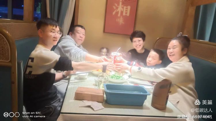 这是我请现场帮忙的火宫殿领导拍的4位三代人共庆洋洋9日比赛获金奖;也庆祝南北相聚同庆我、谭华欢度第115个国际妇女节欢喜就餐的照片。