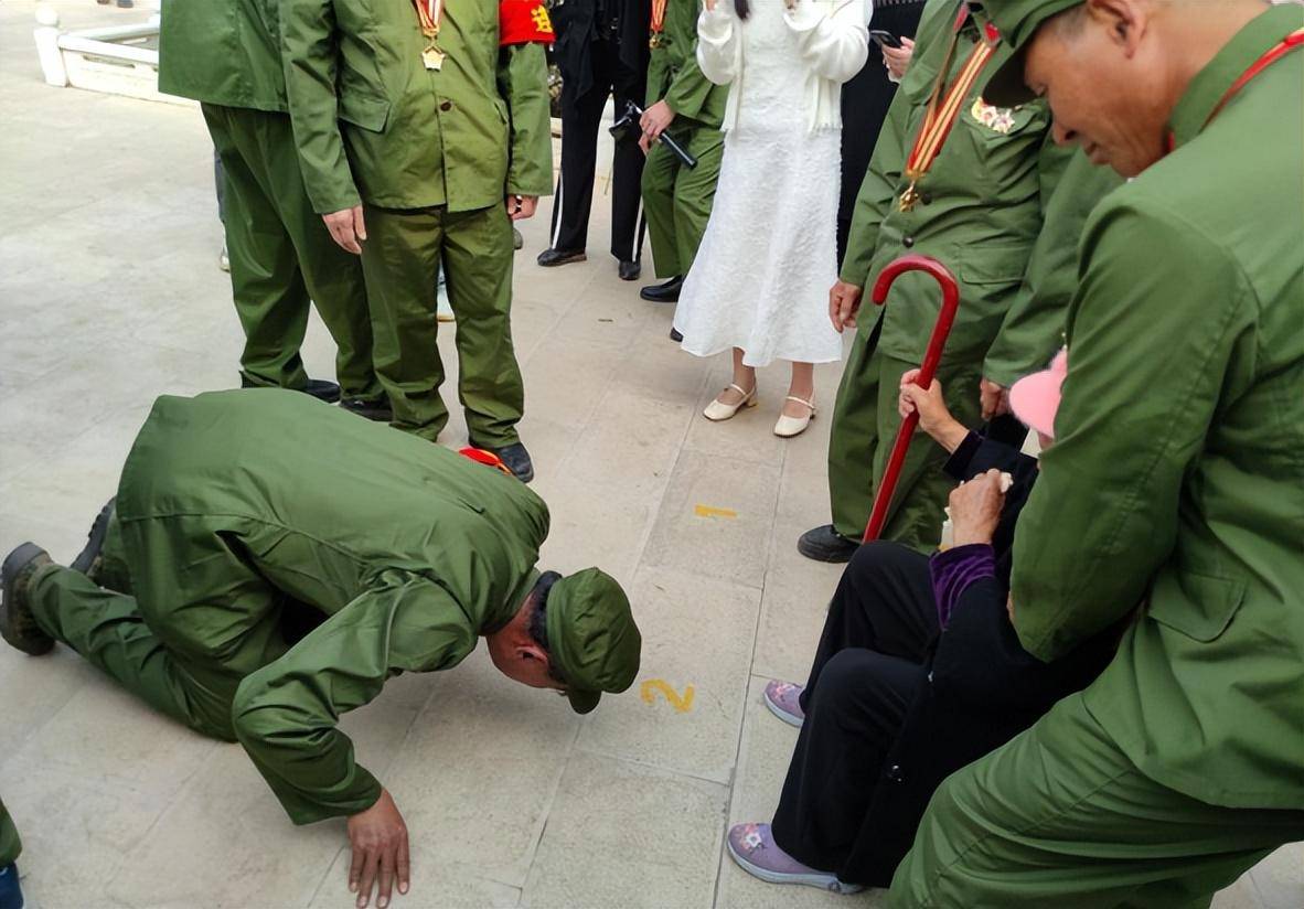 72岁的老兵杜振玉当年是一名指导员。当他见到况远贵烈士母亲的时候喊着妈妈,毫不犹豫跪了下去。