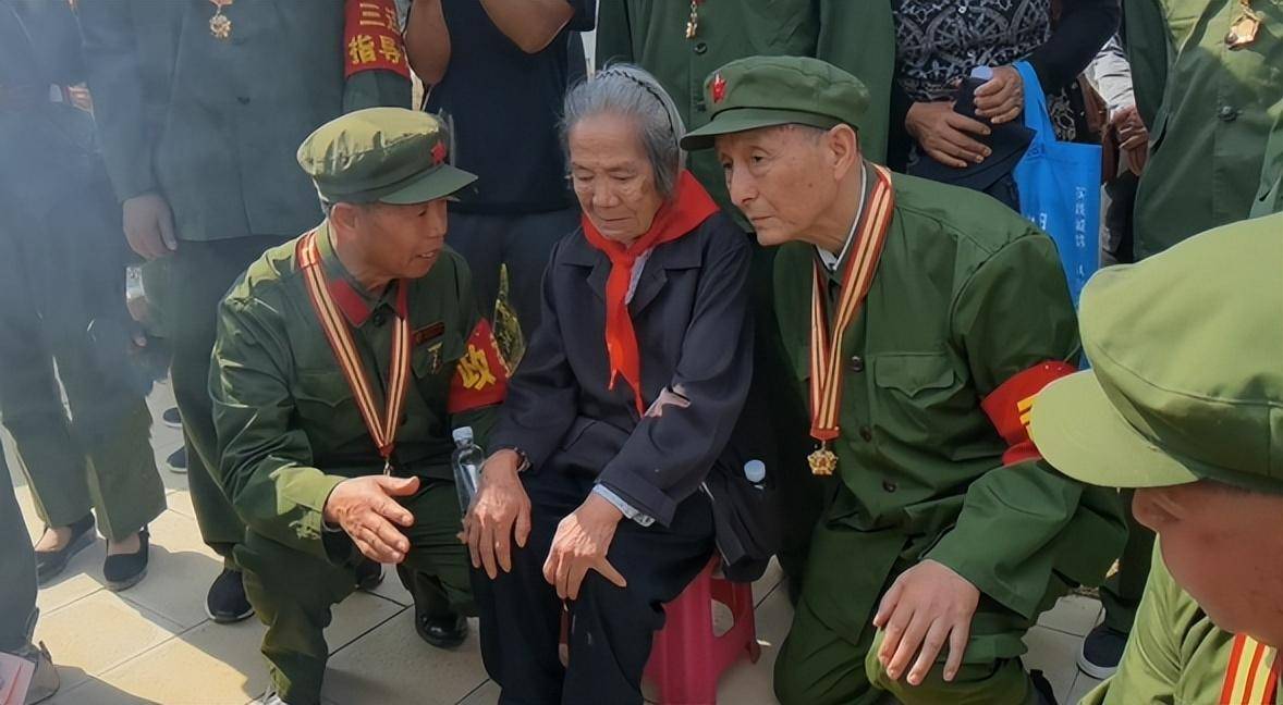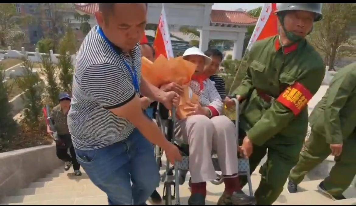 张清林烈士91岁的母亲被老兵们背到儿子墓前,了却了她多年来和儿子贴心聊聊的心愿。