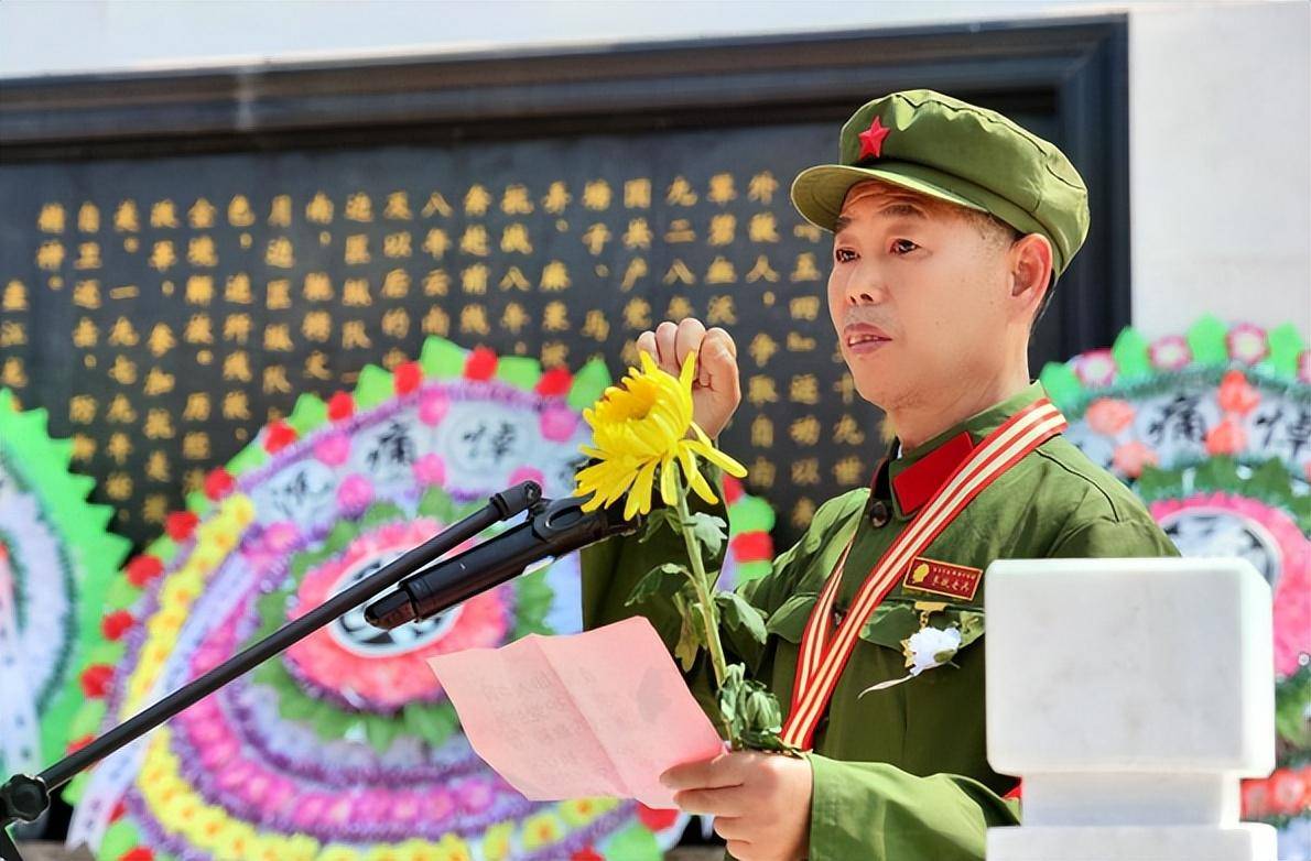 七十多岁的原部队老领导朱建军大校在文山州等烈士陵园深情地致以祭文。