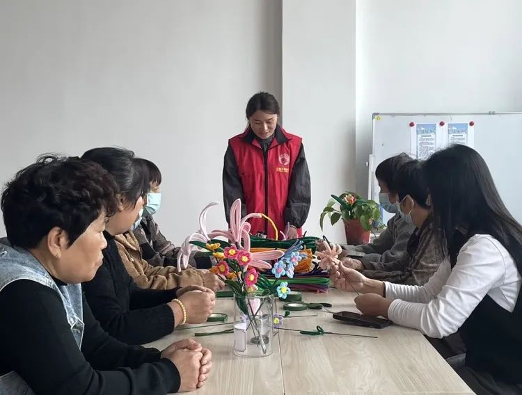活动中社区工作人员为大家介绍清明节的历史文化与传统习俗,让居民们对清明节有了进一步的了解。社区居民一同学习小雏菊扭扭棒的制作方法,居民们纷纷挑选自己喜欢的材料,折出一朵朵栩栩如生的小雏菊,把制作好的花朵放到寄思用的花瓶里,寄托对先人的追思,同时也赋予其春暖新生之意。现场,志愿者们还向居民发放了《文明祭扫倡议书》,倡导辖区居民以低碳环保的方式进行祭悼,摒弃焚烧冥纸冥币等行为,采取献一束花、植一棵树、扫一次墓碑等形式,表达对逝者的缅怀之情。