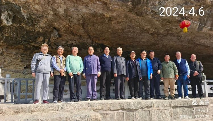 “马棚村”探寻《邵大娘故事》的一众文友在“滴水洞”合影。