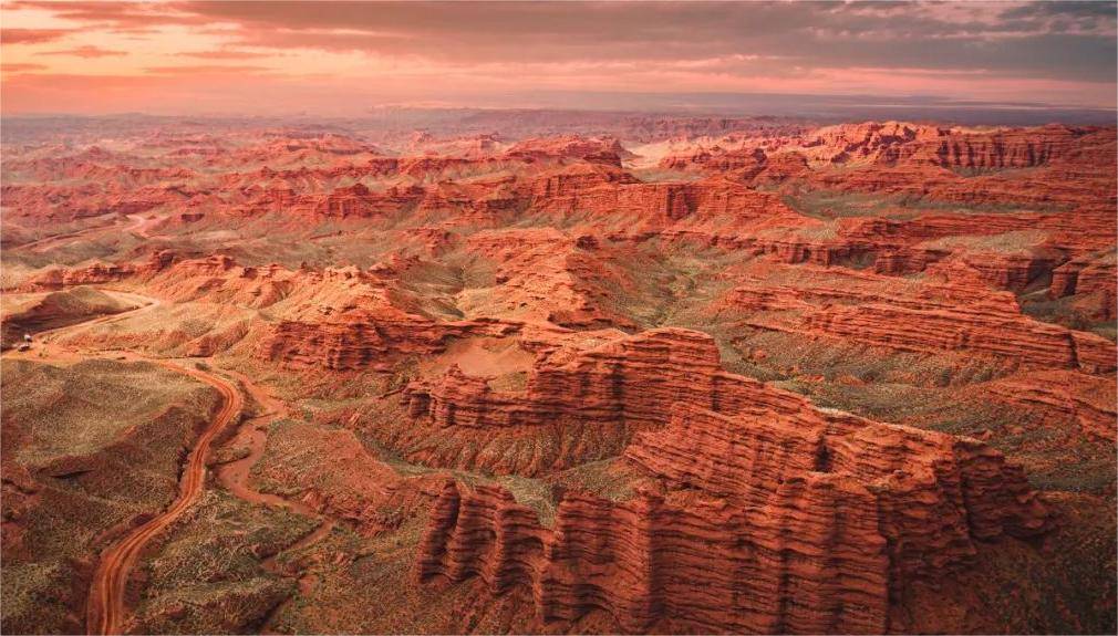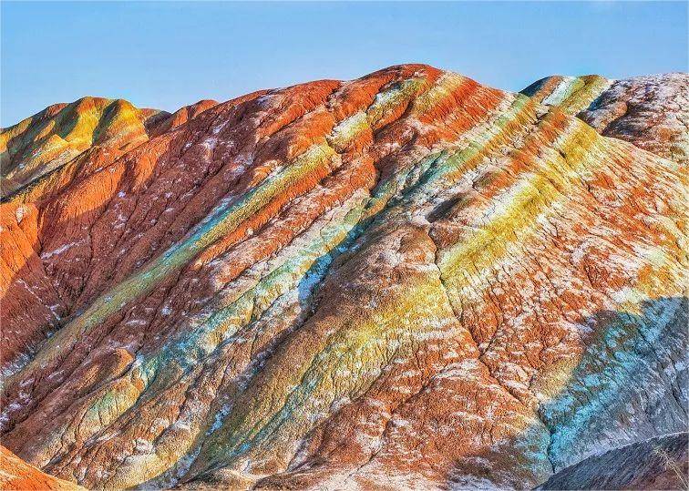 张掖的丹霞,绝非单调的红色所能涵盖,它是一幅如梦如幻的七色画卷,宛如天地间最绚烂的调色盘。在这幅画卷中,红色的热烈、橙色的温暖、黄色的明亮、绿色的清新、青色的深邃、蓝色的宁静和紫色的神秘交织在一起,构成了一幅令人陶醉的美景。当阳光洒在丹霞之上,那五彩斑斓的色彩仿佛跳动起来,宛如火焰在舞动,让人无法抗拒其魅力。