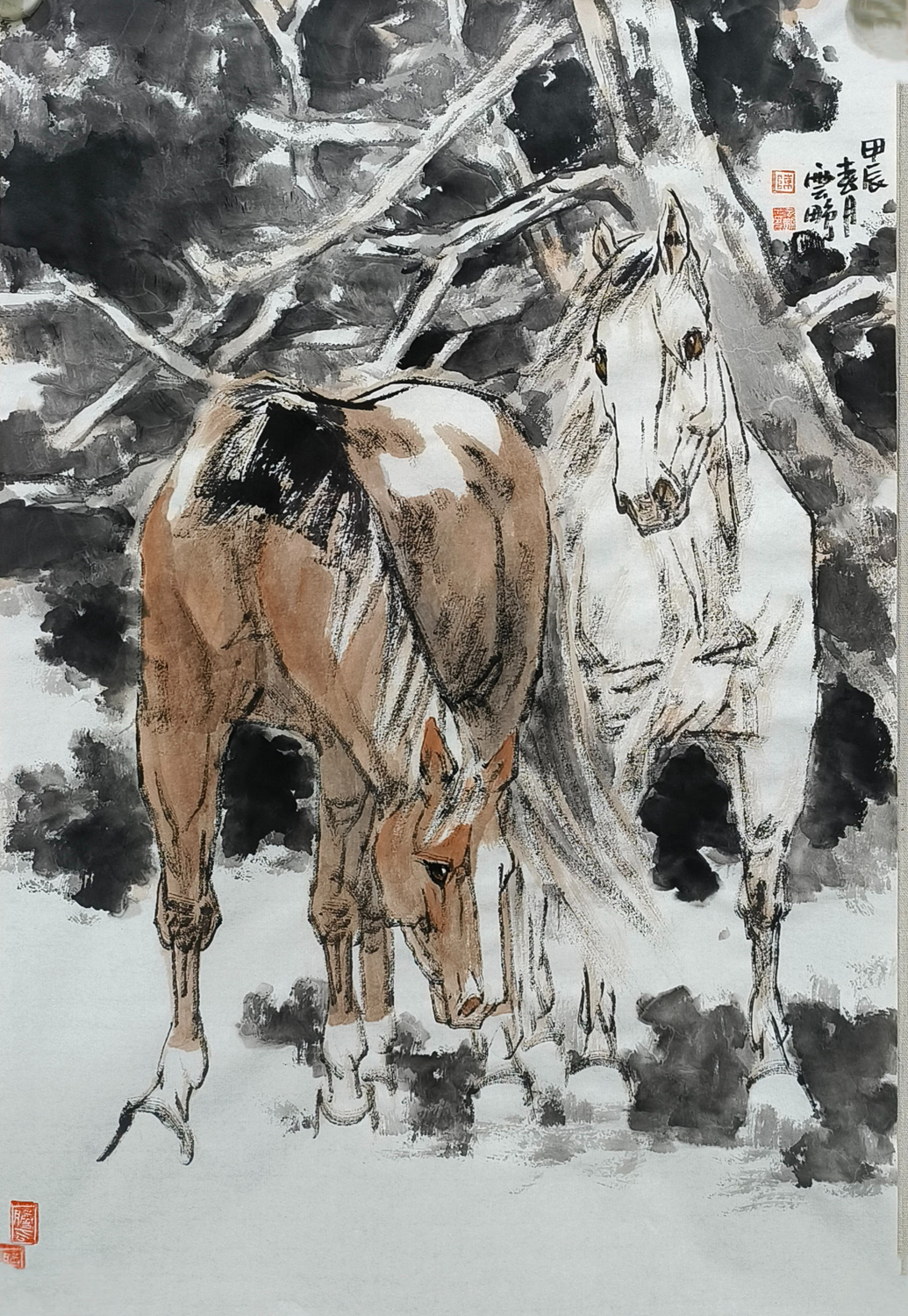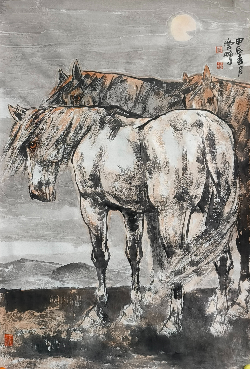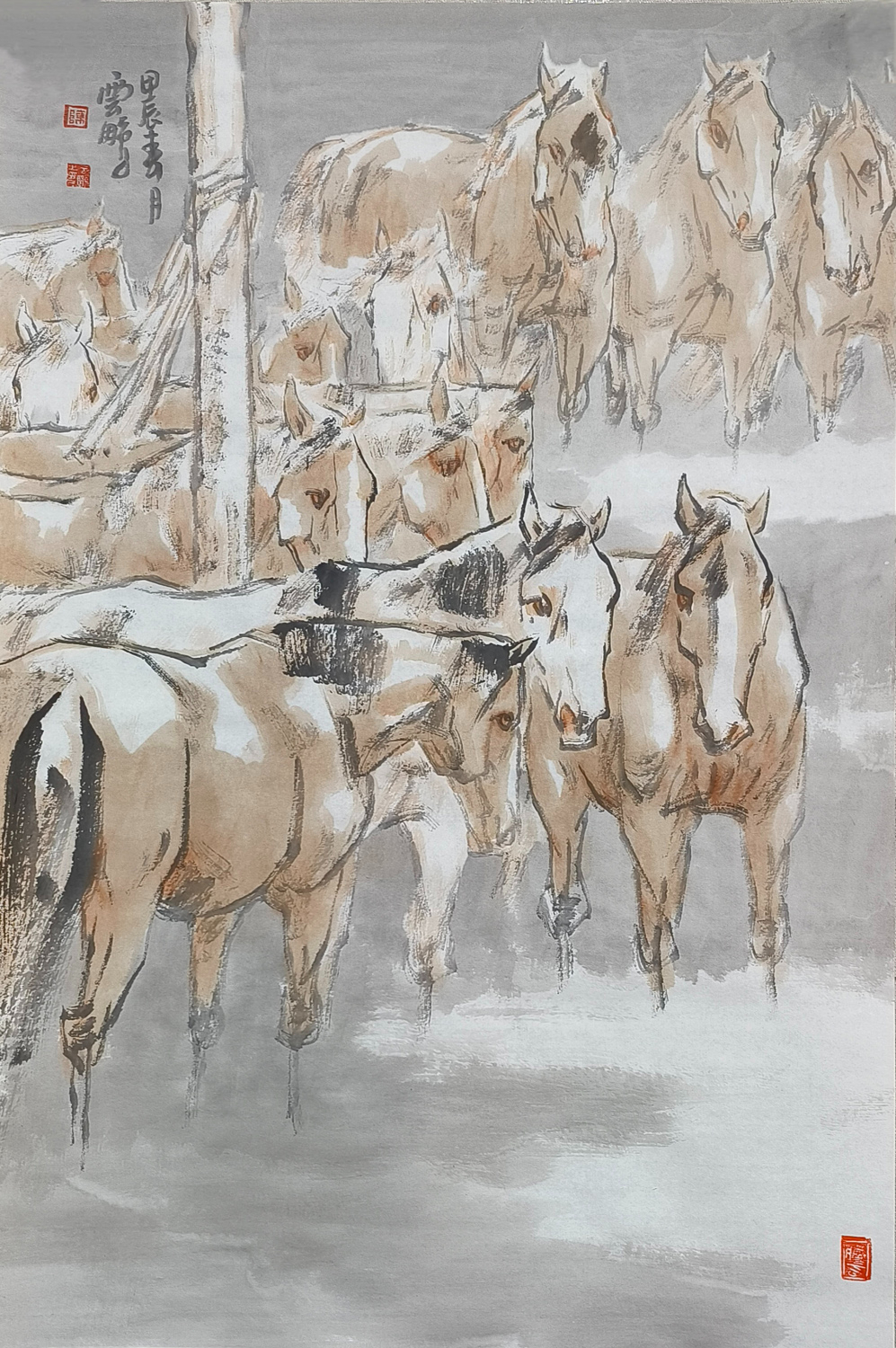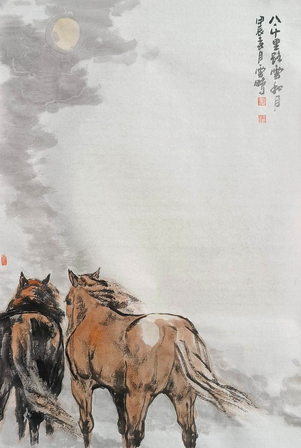 陈云鹏先生笔下的马,犹如诗中的精灵,跃然纸上,灵动而深邃。他绘马的技艺,如同流水潺潺,又如风过竹林,流畅而又不失细腻,既有古朴的韵味,又充满现代的艺术气息。