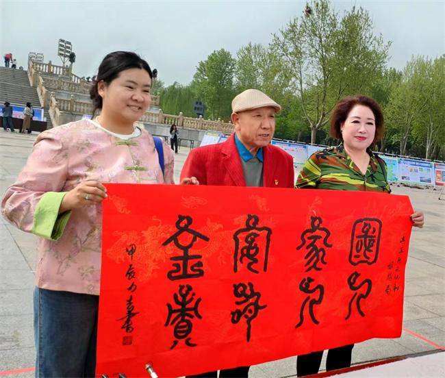 河南省华夏文明促进会豫北书画院非物质文化遗产鸟虫篆传人赵力志、白东升和工作人员王莉芬参加了活动。