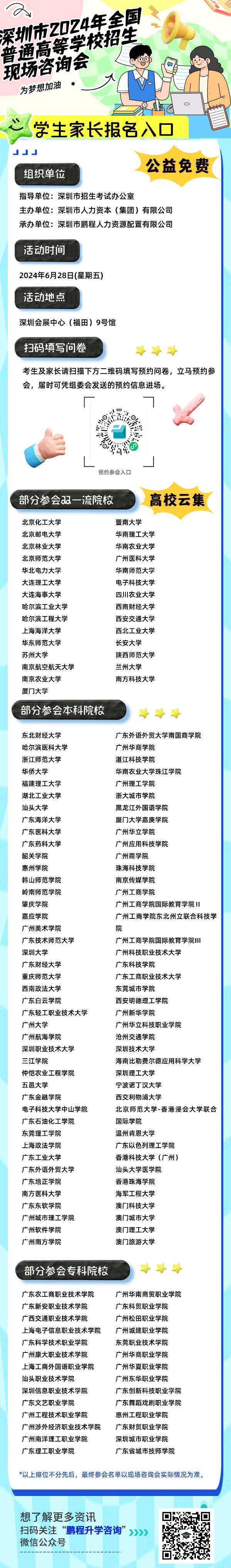 深圳市2024年全国普通高等学校招生咨询会将于6月28日在深圳会展中心9号馆盛大开启!