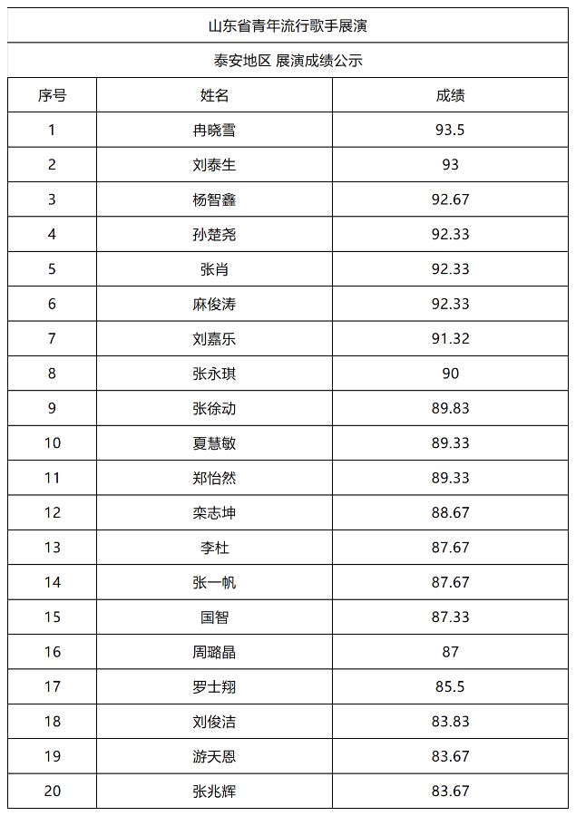 【泰山喜讯】热烈祝贺山东省青年流行歌手泰安市大赛肥城市唯一参选歌手冉晓雪(老家冉庄村)取得93.5高分第一名成绩,代表泰安市前十名参加省里大赛,预祝她成功。这也是继王一代表肥城市、泰安市获得沿黄河九地市乡村歌曲大赛最佳新人奖又一佳绩。