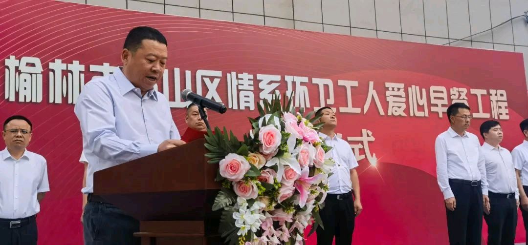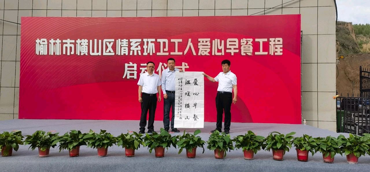 2024年6月2横山商会轮值会长王耀斌先生为横山区环卫工人免费提供爱心早餐的“情系环卫工爱心早餐工程”启动活动在横山区望霞路的环卫工人爱心早餐供应站正式启动。榆林市横山区委书记苗玉祥,区人大副主任、区总工会主席鲁加良,区政府副区长尤文博,区城市管理执法局局长赵春荣等领导出席启动仪式,西安市横山商会会长张帆、常务副会长兼秘书长李文彪、商会第二轮值副会长李体元、常务副会长曹继斌、李生锦、姚舒馨,副秘书长单锦洲、商会文化艺术专业委员会召集人卜晓刚等参加。