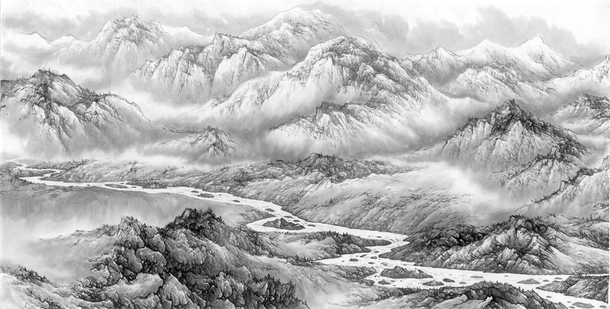 我试着记录青海,不仅是一幅幅画卷,更是以人类的使命记录自然。当画笔与宣纸跳出现实又相互审美关照,我想不是我在绘画,而是千年的历史回应着现实,因为这里是文化自信的根,是孕育滋养中华民族的源。