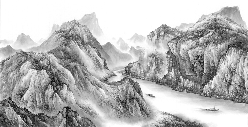 《万里长江图》(2014年)刘广 作 190cmX500cm 墨色纸本