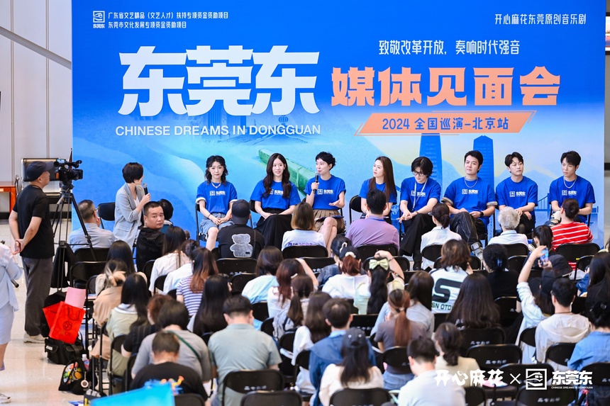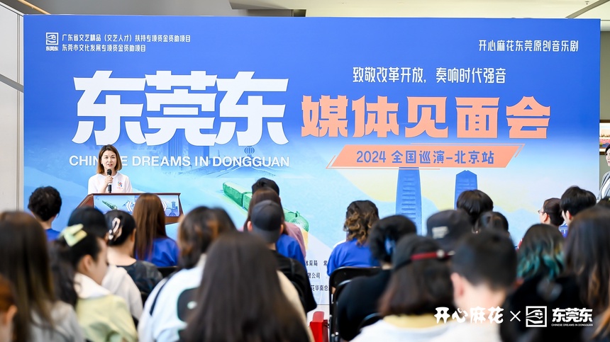 8月13日,开心麻花联合广东东莞推出的原创音乐剧《东莞东》全国巡演北京站媒体见面会在北京二七剧场举办。本次见面会以“致敬改革开放,奏响时代强音”为主题,由该剧出品方、制作方及主创团队成员现场推介《东莞东》,介绍“寻找2亿分之一”活动情况,在首都舞台讲述改革开放时代浪潮下“人与城”的共同成长,展示普通人与时代的共同跃迁,致敬每一个努力奋斗的平凡人。