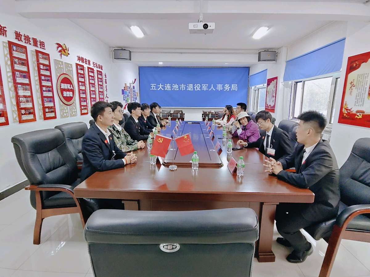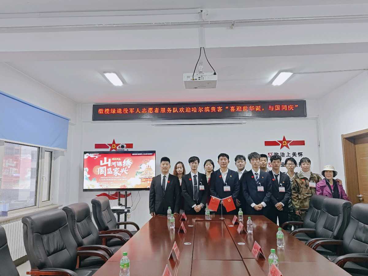 五大连池市橄榄绿退役军人志愿者服务队,热烈欢迎青年艺术会的领导。