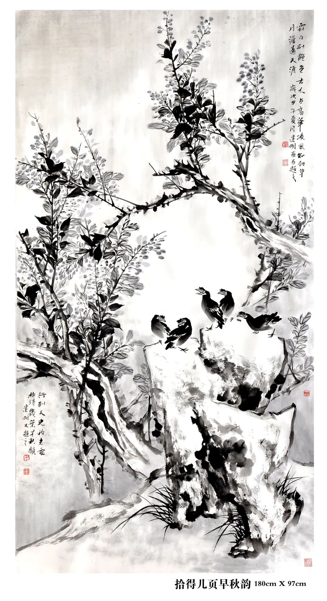 多年来,逄建明在艺术审美上仍保持着孩童般纯净、质朴与超脱的文人情怀,从其作品的点线笔墨间,能看出他对自然风光的无限热爱与对美好生活的向往憧憬。这种心境心魂的形成,离不开长期以来对写意花鸟艺术的不懈探索与持续追求,离不开多年创作经验积累过程中深刻的思考。
