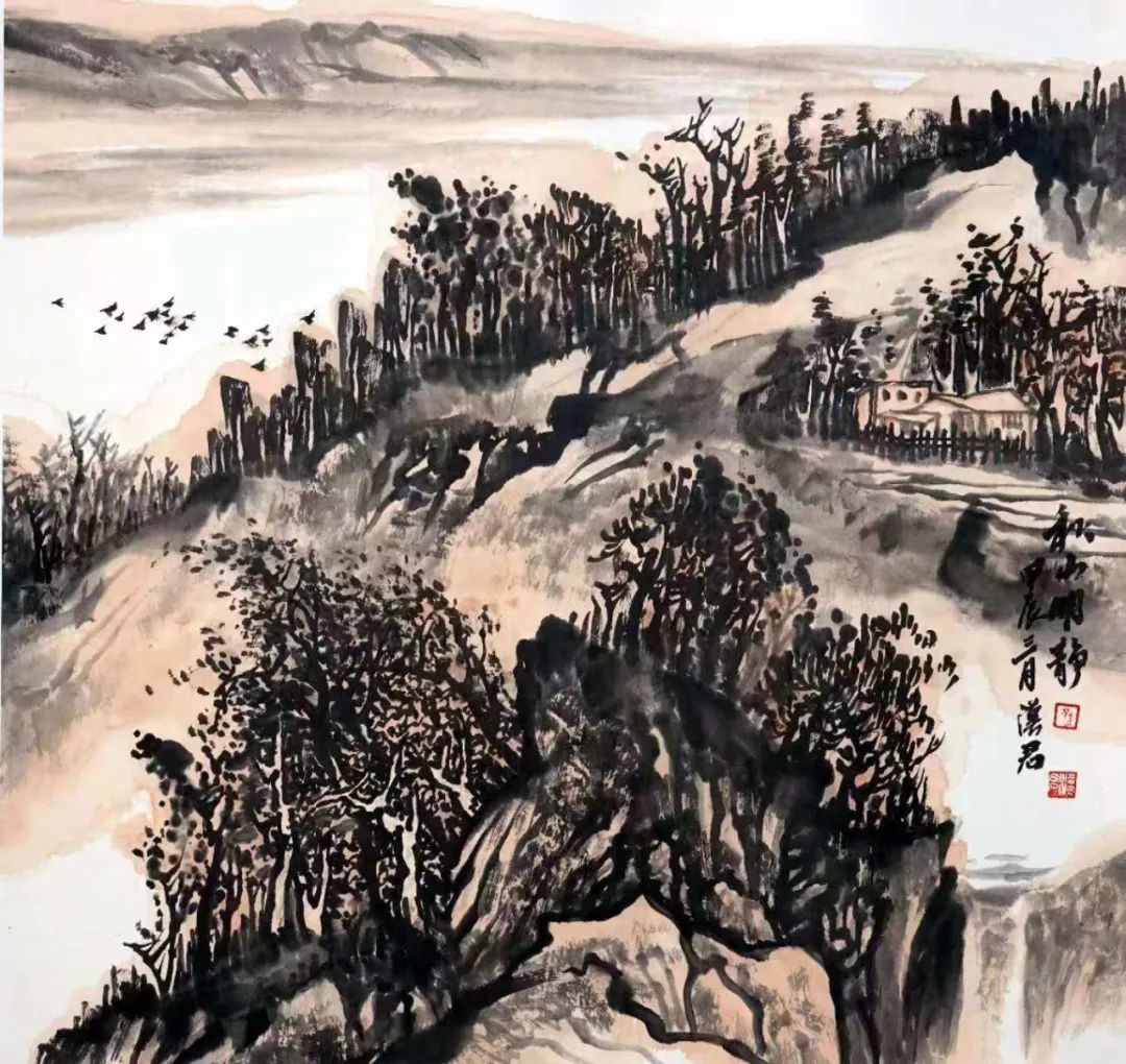 《秋山夕辉胜朝霞》 纸质墨笔 68×68cm