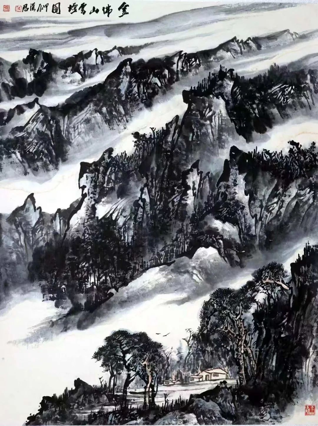 《巴山浴暉图》 纸质墨笔 96×156cm