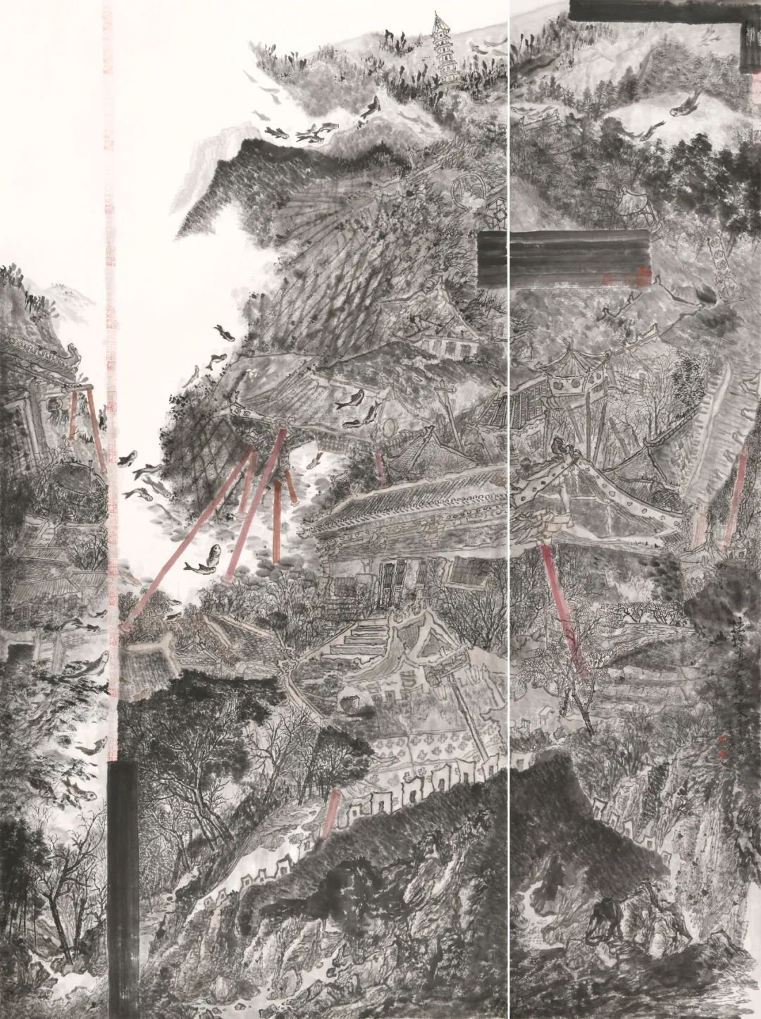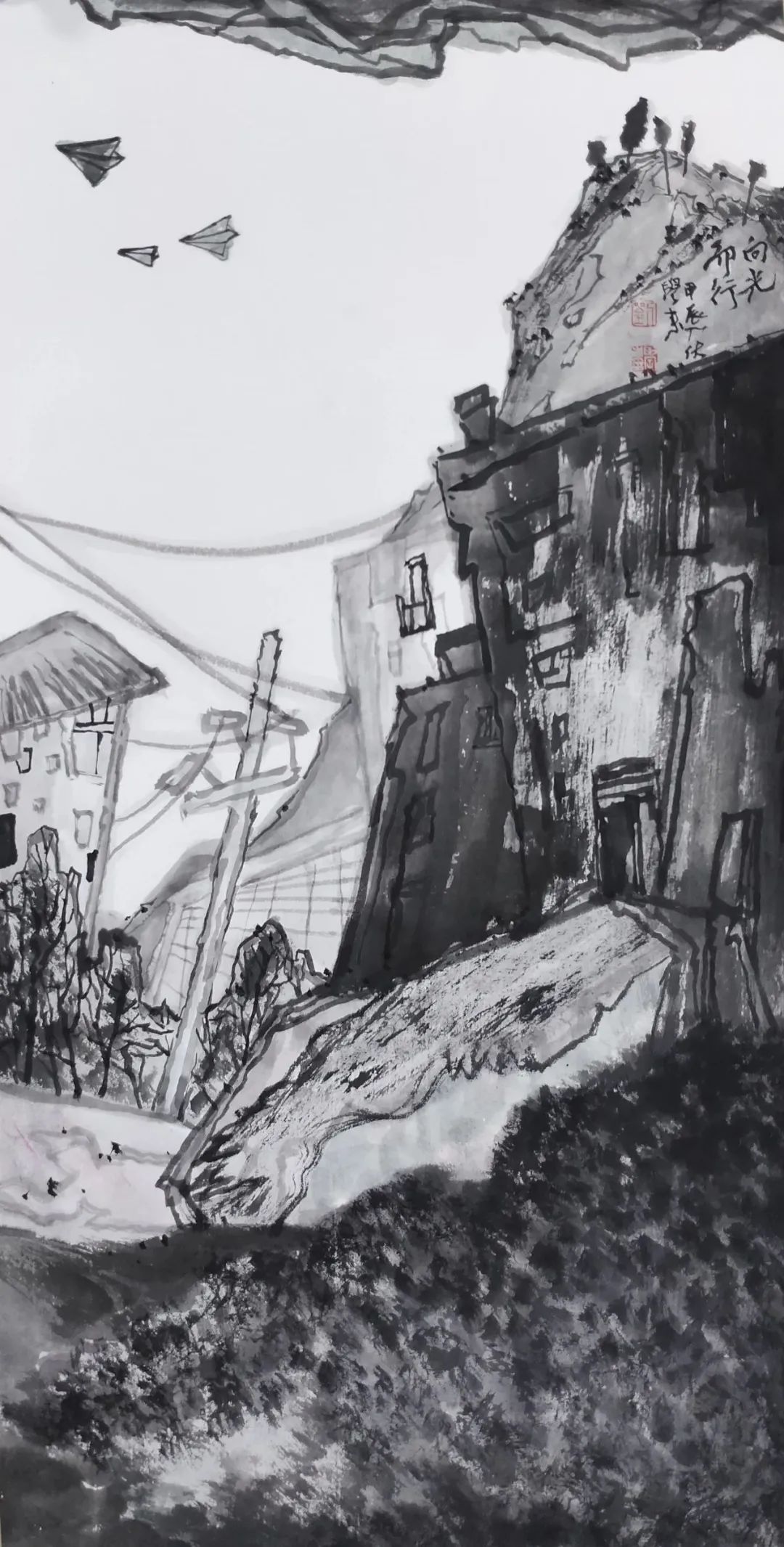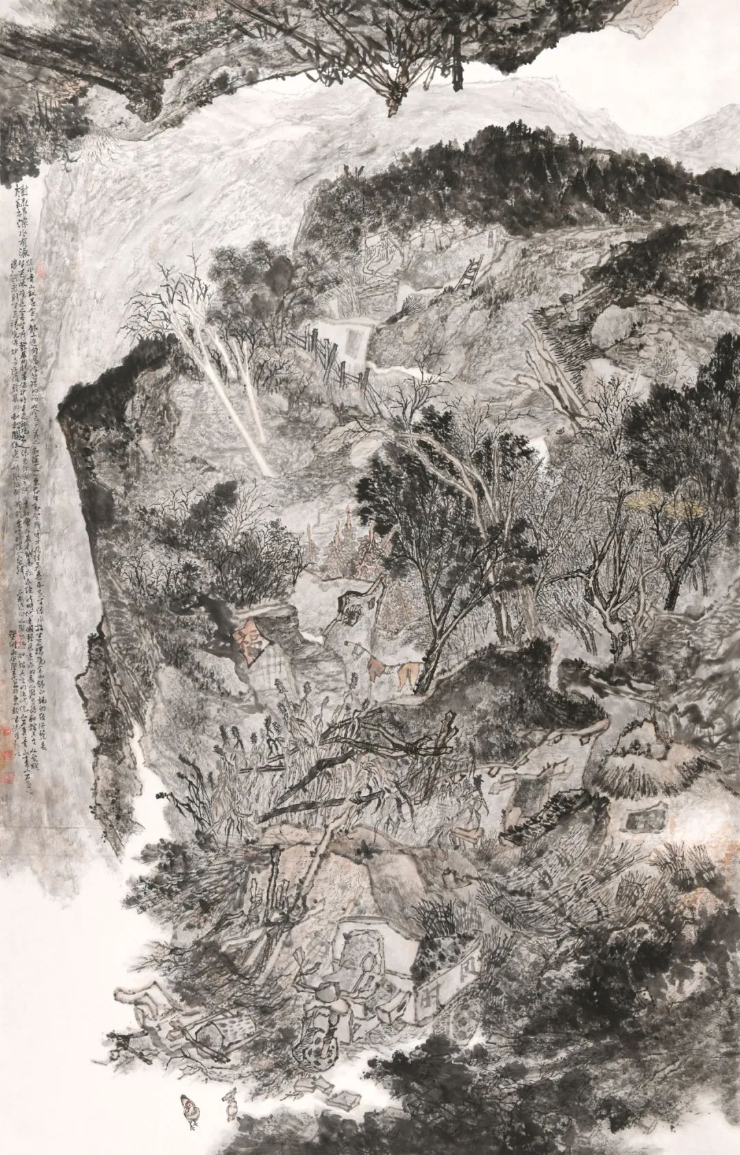 山水画作为国画古老传统题材绘画之一,传承至今已有几千年的文化历史,是我们文化艺术文明的精神展现。写意山水画是把自己的情感灌注于山水画中,不追求形态的宛似,而是更加注重意境的表达。刘学东老师生活在北方,对家乡的山水林田都有着深深的眷恋,无论走到哪里,都不能忘记家乡的特有山坡,他说:“我经常静静的看着老家的山林坡石好像和他们在一起有说不完的话,这也是自我体认和反观自己的途径,他同样可以折射出人的一种精神状态和人生境界。山水可居可游,你身体的一切感知,都可以与自己内心相关照,获得精神上慰藉和参悟,人与自然一体,坐穷观化,澄怀味象。尤其是塞北这片从小玩耍的沟沟坎坎,每次都留恋不倦,这可能也是我后来喜欢画山水的内在原因。”一个画家所思与所画,应当与他的从小经历是一个有机整体。尤其是那抹不去、淡不了乡愁。自古以来,山水画的创作为众多画家所青睐,取得的成就也最大,原因是山水最能表现自然的正大、纯朴、高峻、挺拔、瑰丽,突出地呈现生命的强悍与不羁,从中反映画家对事物、生命的审视态度;另外一个原因是山水的形状各异,富于变化,为画家提供了施展才能及想象的空间,能够充分发挥其特长,表现自我特征,达到画者与山水的互融,形成笔墨既画人生的崇高境界。我们在这里期盼着刘学东老师的无限乡思幻化为千笔万墨,书写的是山,吟唱的是诗!