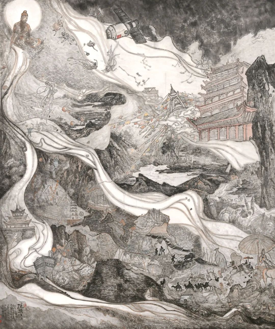 6、2022年6月,国画作品《昂坪360》入选由中国美术家协会主办的庆祝香港回归祖国25周年全国美术作品展。